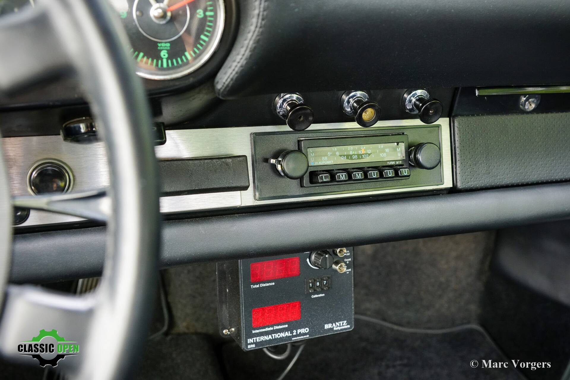 The car is fitted with immaculate original Fuchs wheels shod with Vredestein Giugiaro Design Sporttrac 5 195/65R15 91V tyres, a 1970s Blaupunkt Turin radio with 108 MHz FM reception, and a Brantz International 2Pro tripmaster.