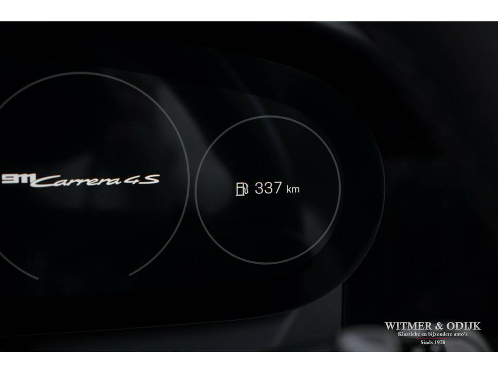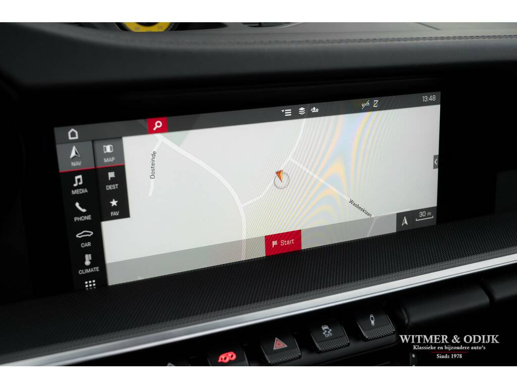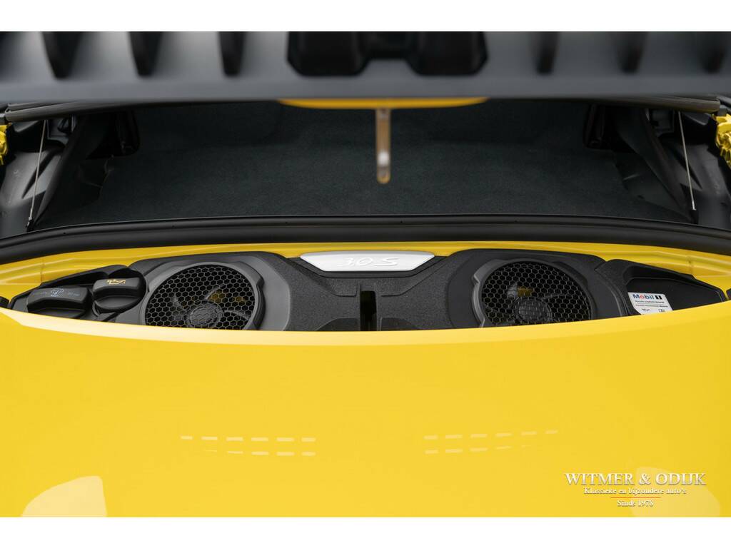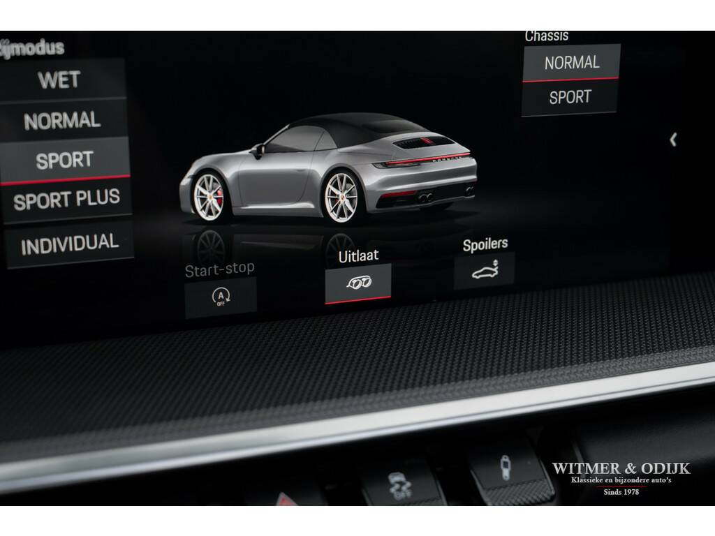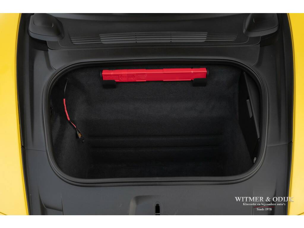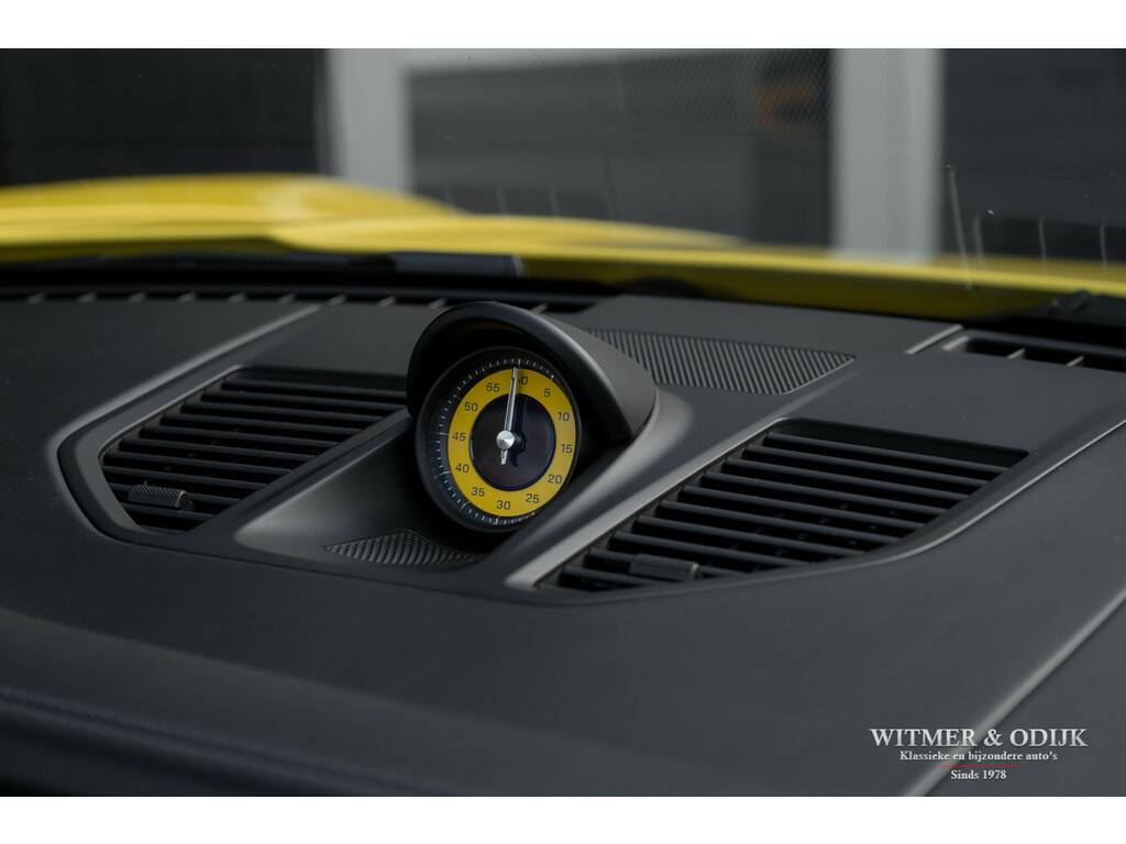 Autofabrikanten gebruiken de meest exotische namen voor de carrosserie kleuren die ze aanbieden. Bij Porsche zijn ze graag wat directer wanneer het om kleur gaat...Racing Yellow! Kan het duidelijker? Niet dat de slechts twee vorige eigenaren het circuit verkende met deze 911. Maar dat we het hier over de beste sport!wagen ter wereld hebben bekrachtigd die kleurnaam nadrukkelijk. Op de foto's komt de auto nog niet half zo sterk voor de dag als dat deze in het echt is, iedere keer als ik door onze showroom loop kan ik mijn ogen niet van deze Porsche afhouden. Met name in deze cabrio versie, met het fraai contrasterende dak en zwarte accenten komt de heerlijk welvende carrosserie zo mooi tot zijn recht. Optisch overigens in nieuwstaat, ook het interieur is als gevolg van de aantrekkelijk lage kilometerstand in topconditie. Voorzien van alle belangrijke opties; zo zijn er o.a. automatische dual zone climat control, regelbare stoelverwarming, meervoudig elektrisch verstelbare stoelen met geheugen, Sport Chrono pakket (met fraai in geel uitgevoerde wijzerplaat), schakelbare sportuitlaat, Porsche Communication Management met navigatie en Carplay, achteruitrijcamera, rondom Parc Distance Control, cruise control, LED verlichting, elektrisch opklapbaar windscherm, Bose soundsystem met subwoofer, multifunctioneel en verstelbaar GT sportstuur, een volledig in leer uitgevoerd interieur, prachtige lichtmetalen velgen 20 en 21 inch, etc. De carrosserie, het cabriodak, de velgen en bumpers, alles is optisch in bijzonder fraaie nieuwstaat. Rijklaar in onze showroom, maak a.u.b. even aan afspraak als u deze 992 Carrera 4S wilt bezichtigen.