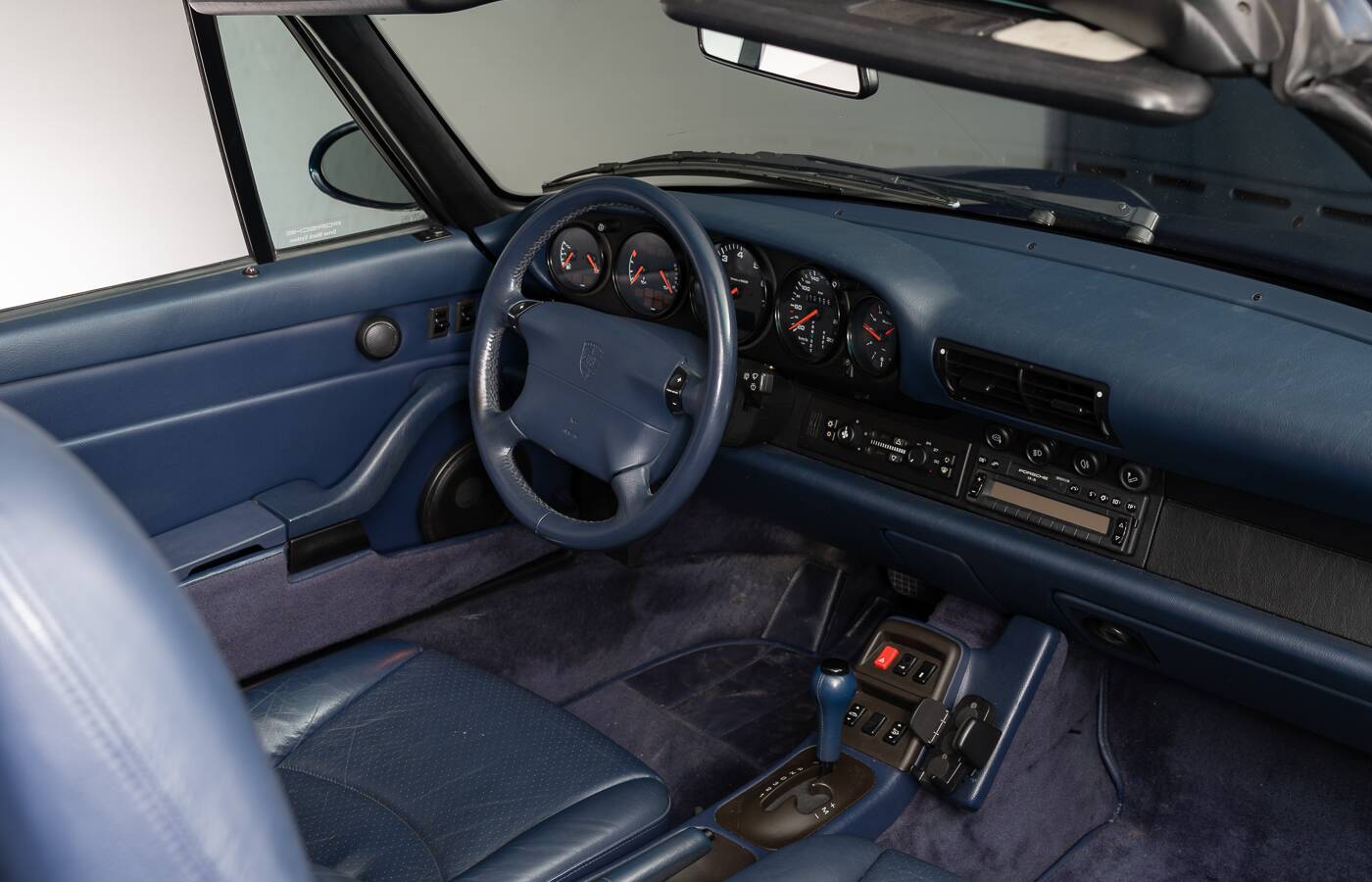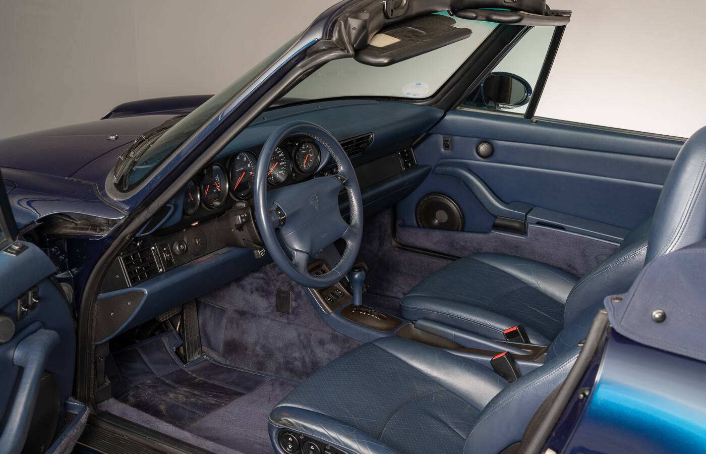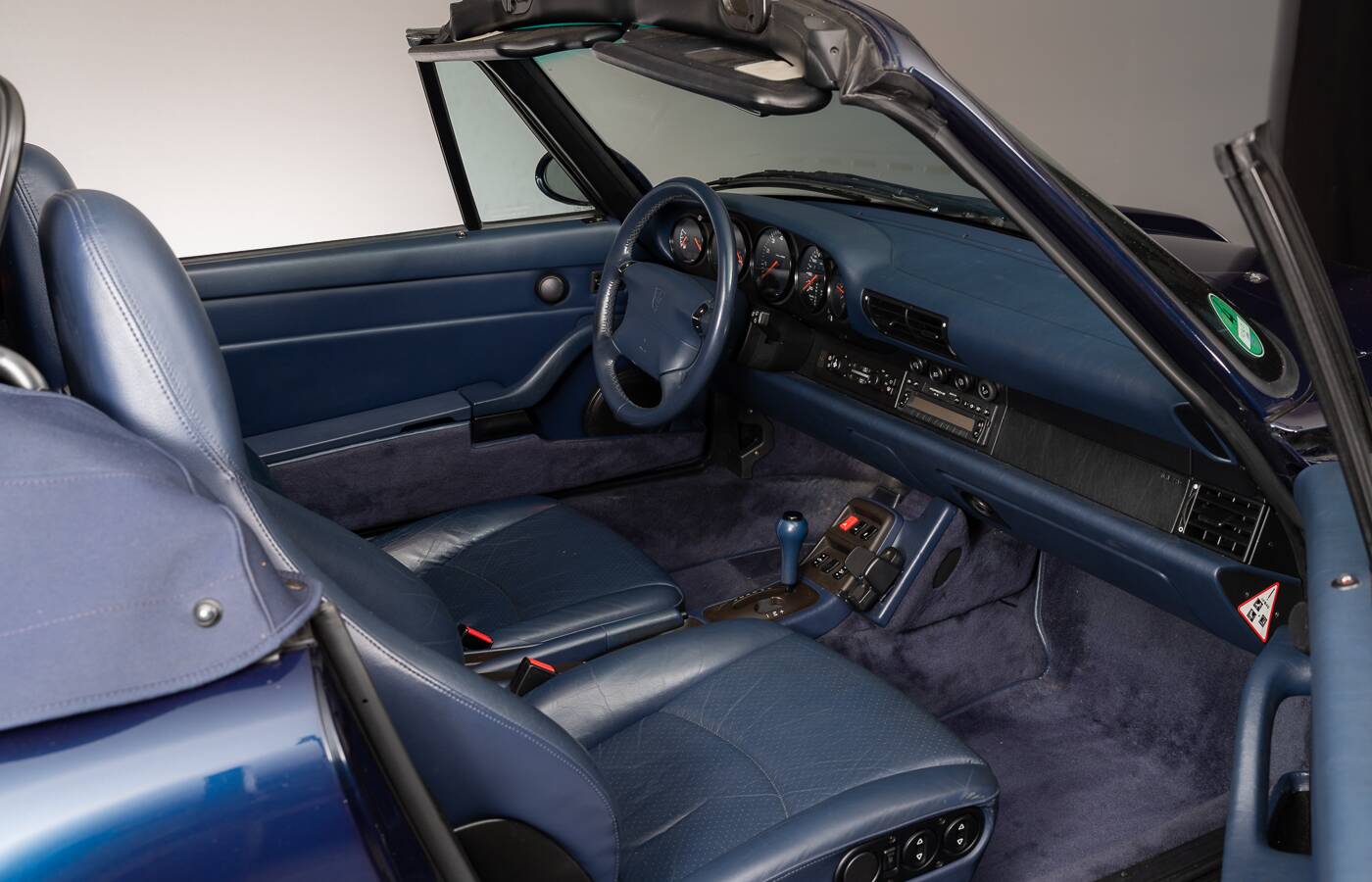 The vehicle offered here was first registered in Germany in 1997 has two owners before. It impresses with its attractive colour combination: ocean blue metallic with dark blue leather interior and soft top. The vehicle is in very good condition and original, with a complete service history.