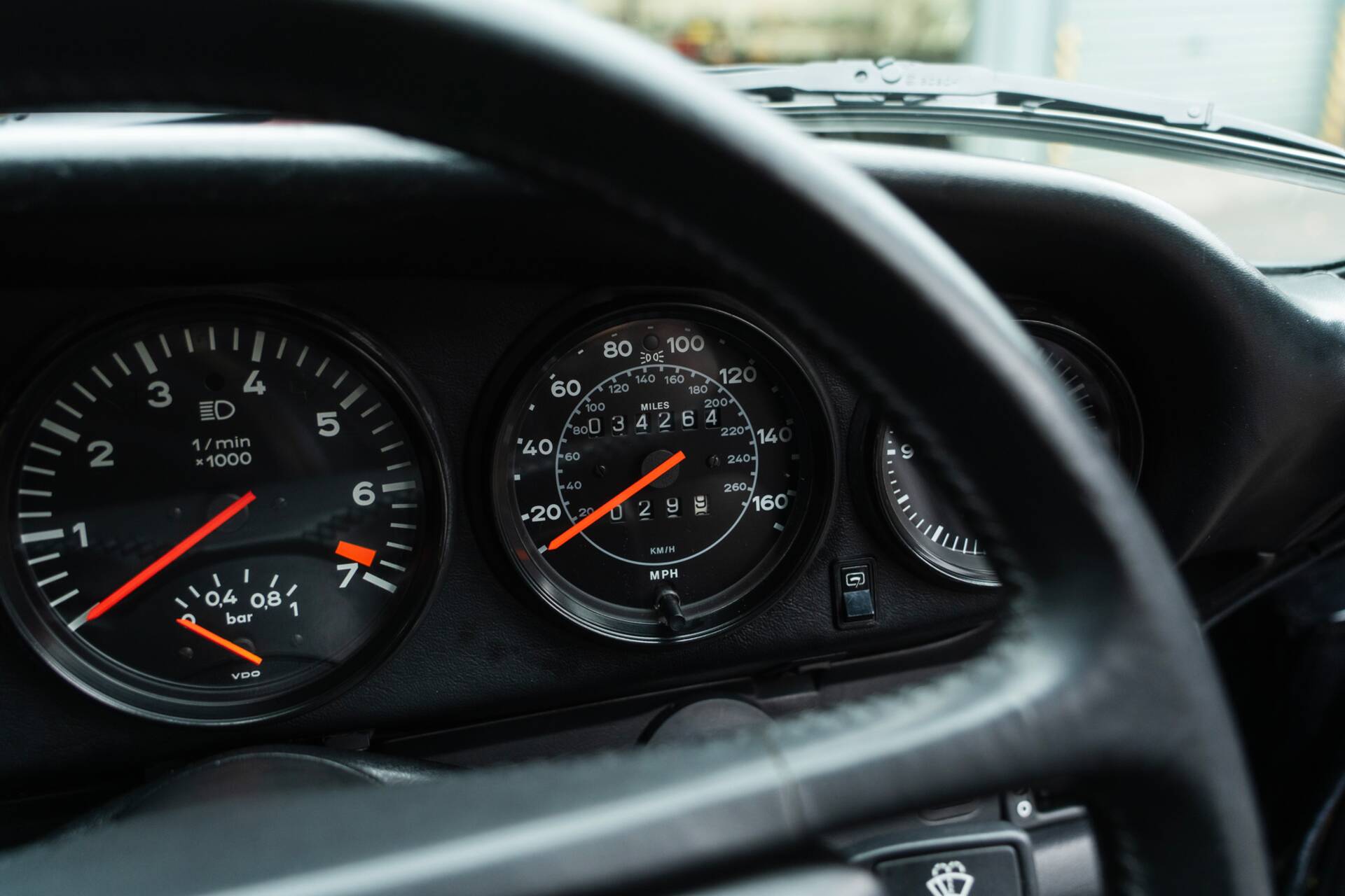 Our Porsche Turbo was supplied new by A.F.N Ltd Porsche in September 1989. The 911 Turbo retains its original book pack, spare keys, an MOT history stretching back to 1992, and of course numerous service invoices from Official Porsche Centres and Porsche specialists. The 911 Turbo is now offered for sale after completing a recommissioning and comprehensive pre-sales check by Porsche-trained master technicians.  The check has included a major service with spark plugs, new N-rated tyre set, air conditioning system overhaul, oil seals, belts, bonnet struts, and brake fluid service amongst numerous other tasks, to ensure the 911 Turbo fully prepared for its next owner to enjoy.   A 12-month comprehensive warranty is also included.