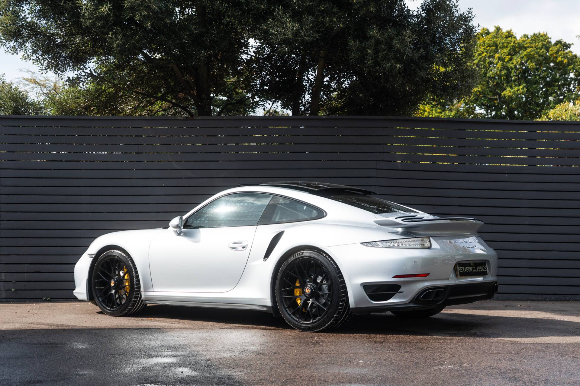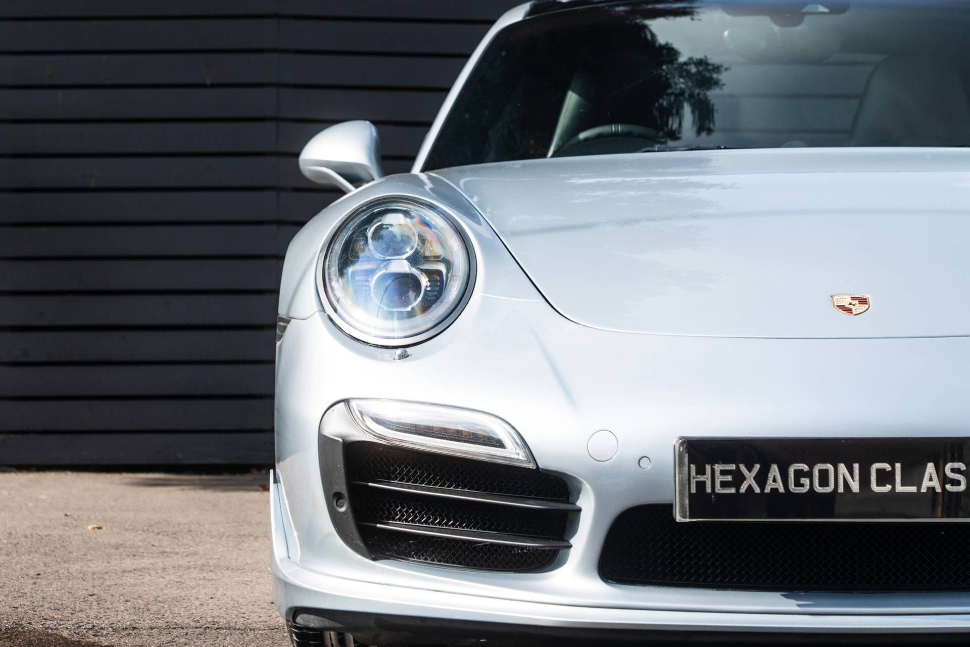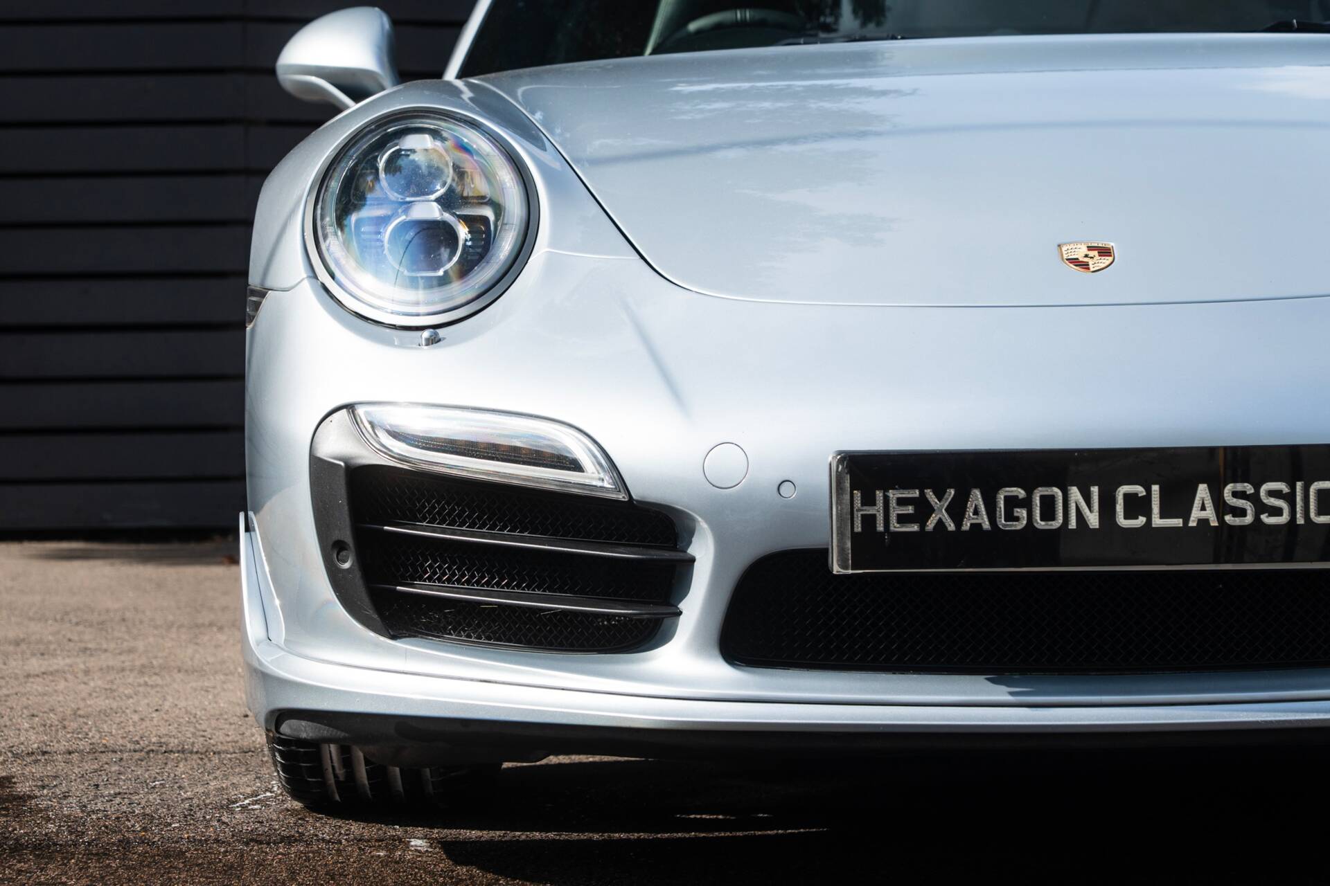 Hexagon Classics are delighted to present this superb Porsche 911 (991) Turbo S PDK Coupe, finished in timeless Rhodium Silver Metallic with a contrasting black leather interior. Combining everyday usability with staggering performance, the Turbo S represents the pinnacle of Porsche’s engineering know-how.