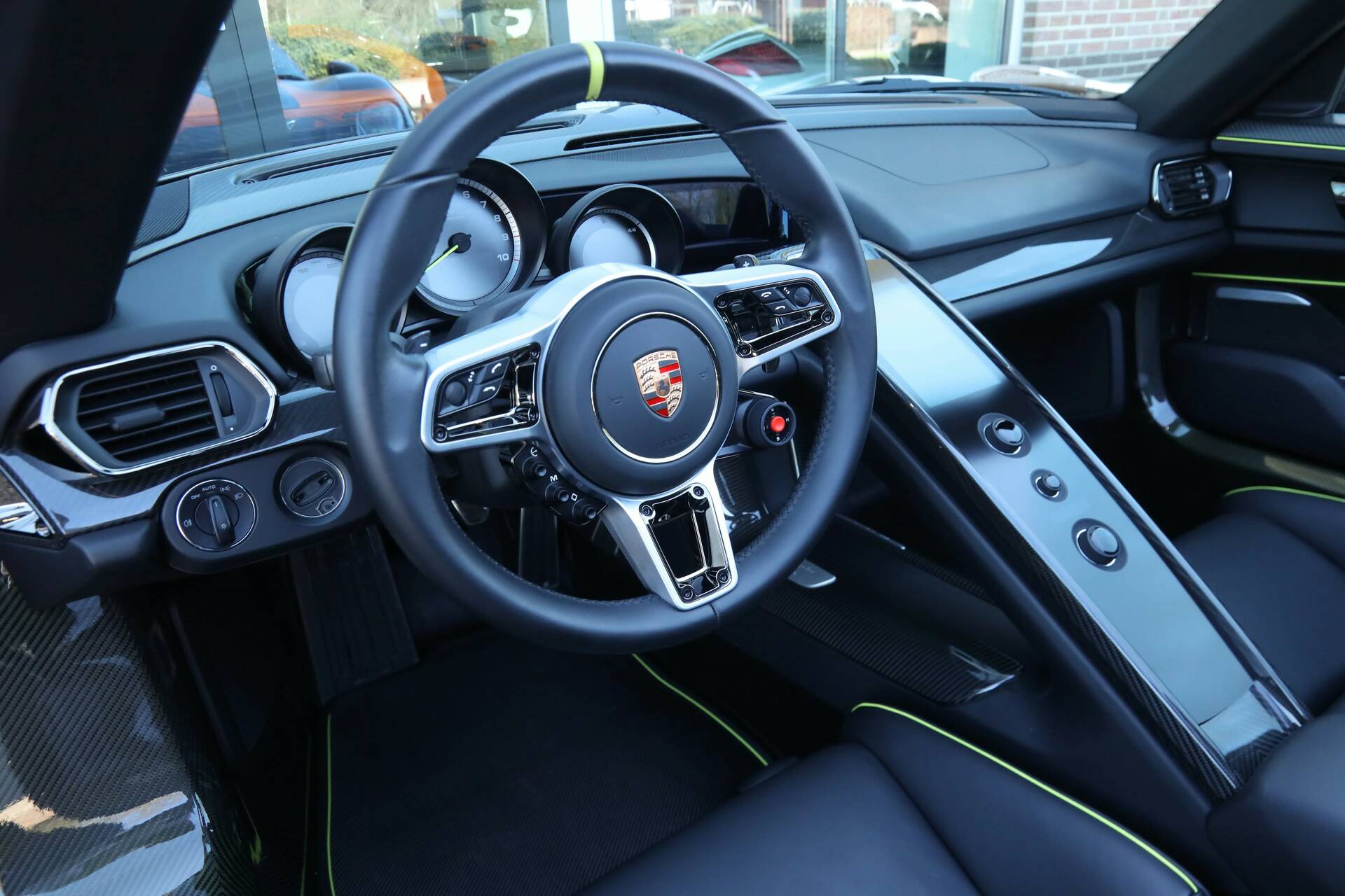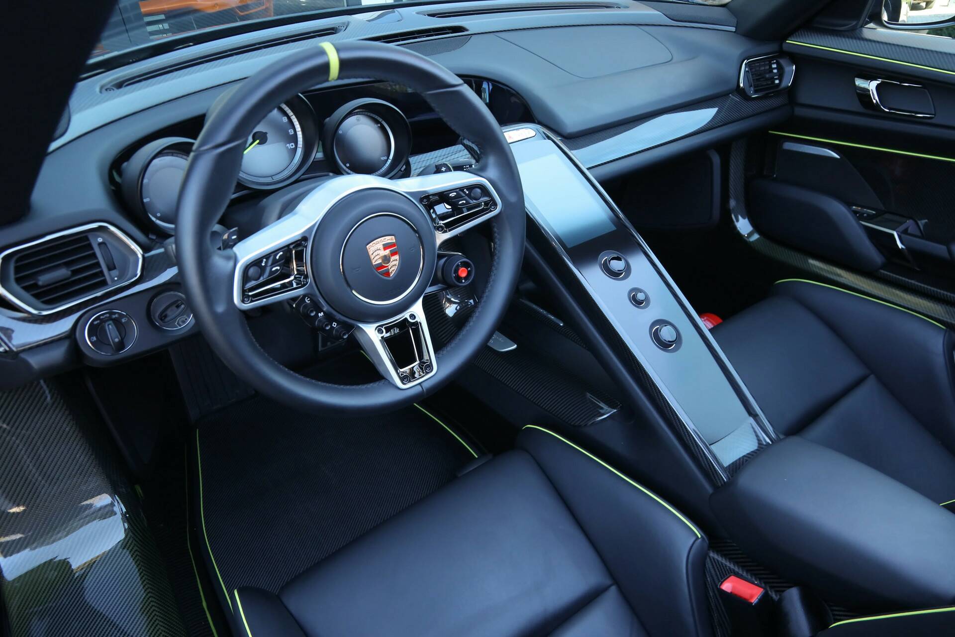 Porsche 918 Spyder "Low kilometers - Just over 7.000 kilometers" 918 Spyder (EU specs) delivered in Germany with scheduled Porsche maintenance at the authorized dealer, Livery in "Basaltschwarz over Onyxschwarz with Acidgreen", Of course - there's the Big 6 - but there's also the holy trinity (LaFerrari-McLaren P1-918 Spyder), A 918 Spyder with no compromises on quality or performance - just perfect in every way,