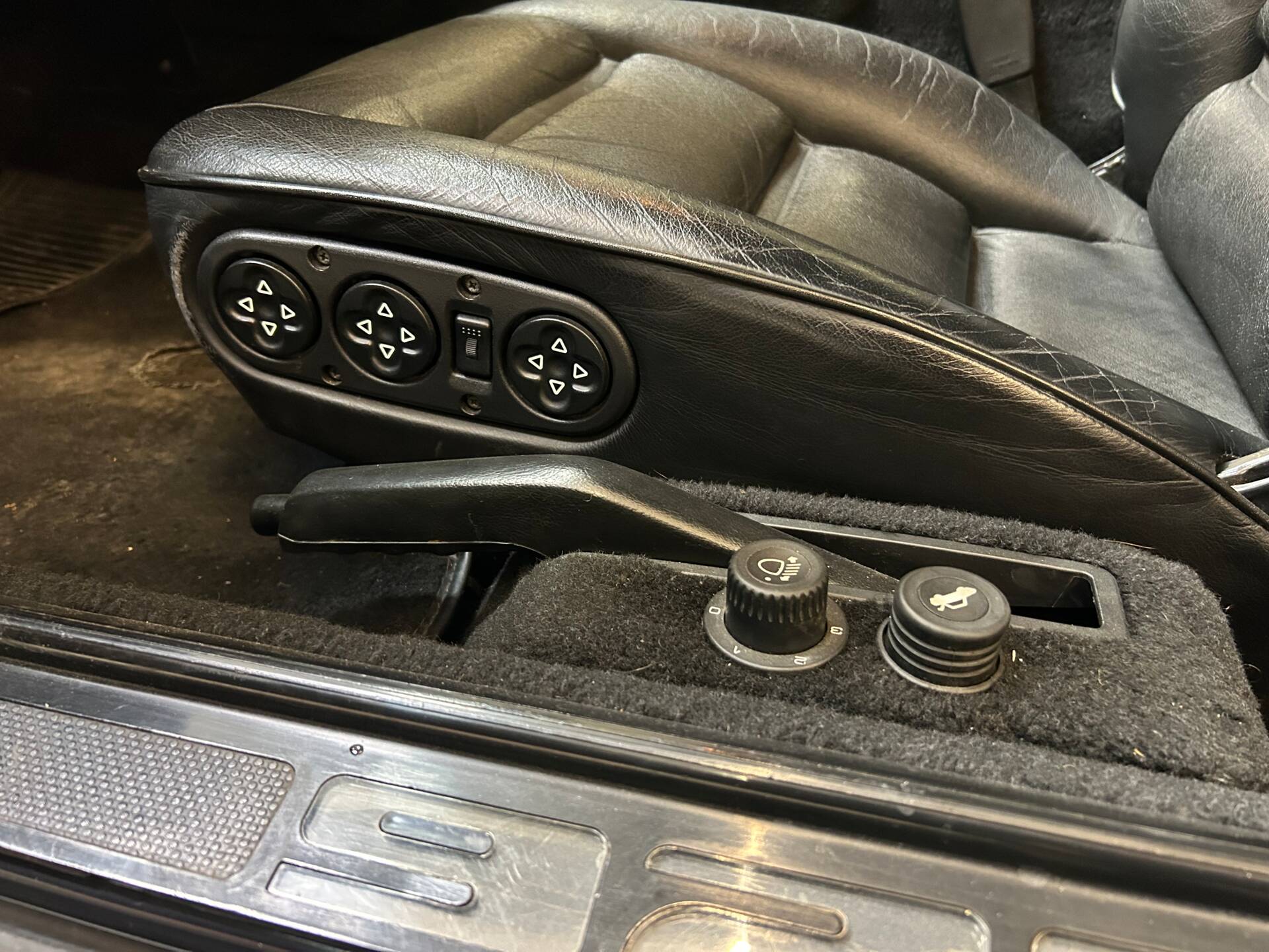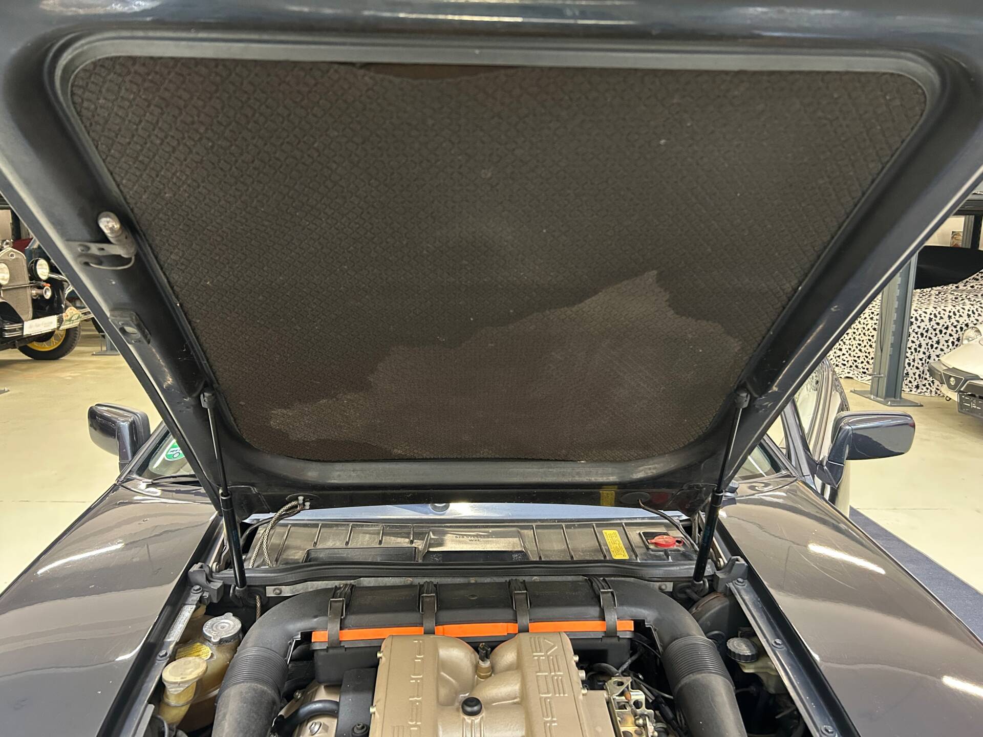Dieses dunkelblaue Exemplar läuft gut und hat eine sehr gute Substanz, benötigt aber nach längerer Standzeit etwas Liebe an Technik und Optik. Die Innenausstattung ist in Anbetracht der Laufleistung in einem sehr guten und gepflegten Zustand. Der zuletzt beim Porschespezialisten Krämer in Vogt betreute Wagen kommt mit deutschen Papieren und einigen Rechnungen vom aktuellen Besitzer. Lenkrad und Räder sind eingetragen.