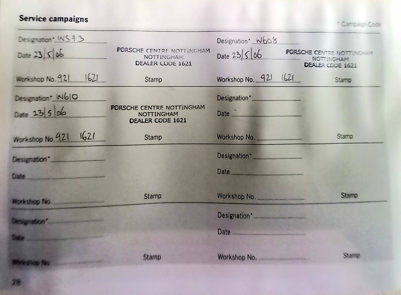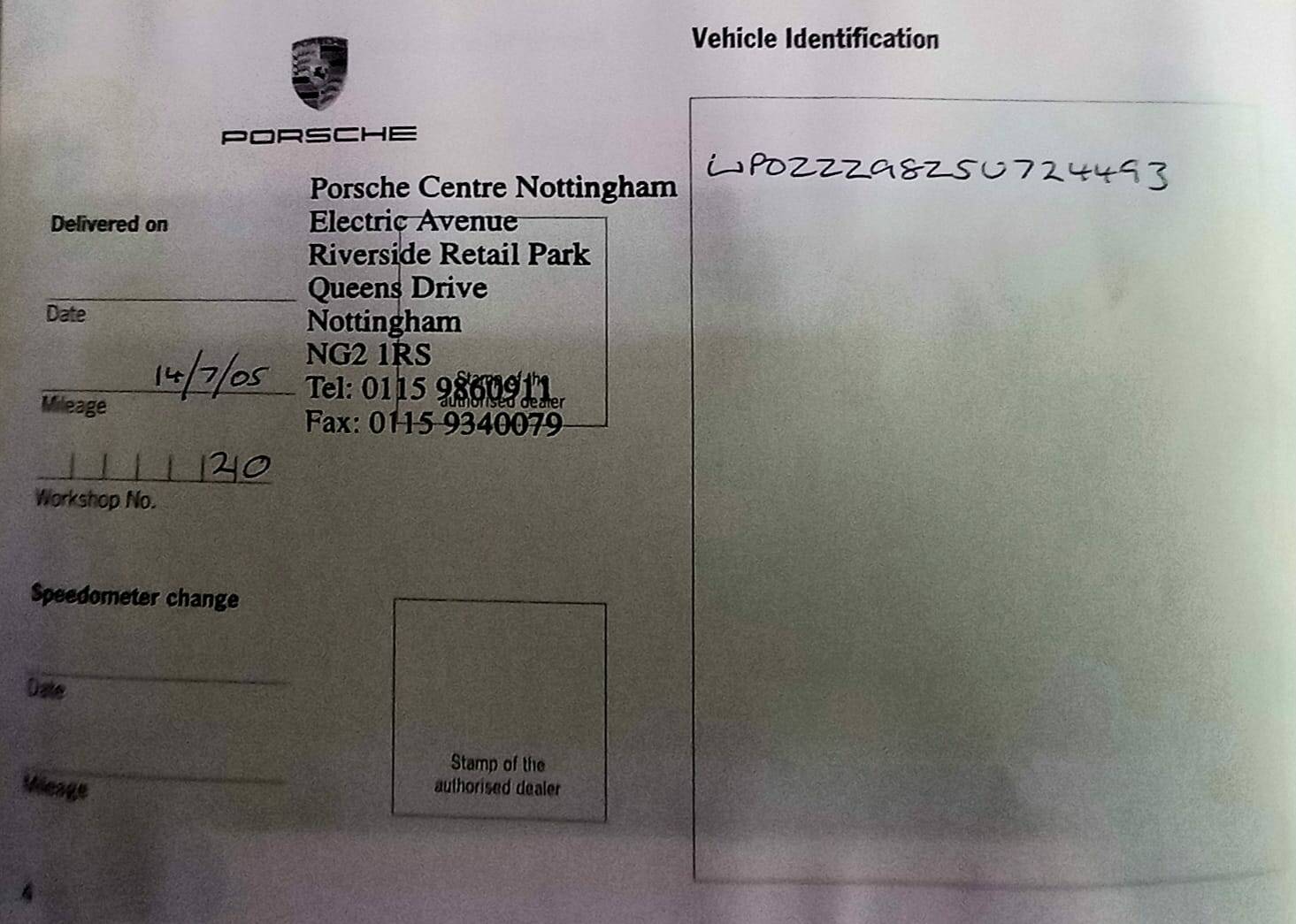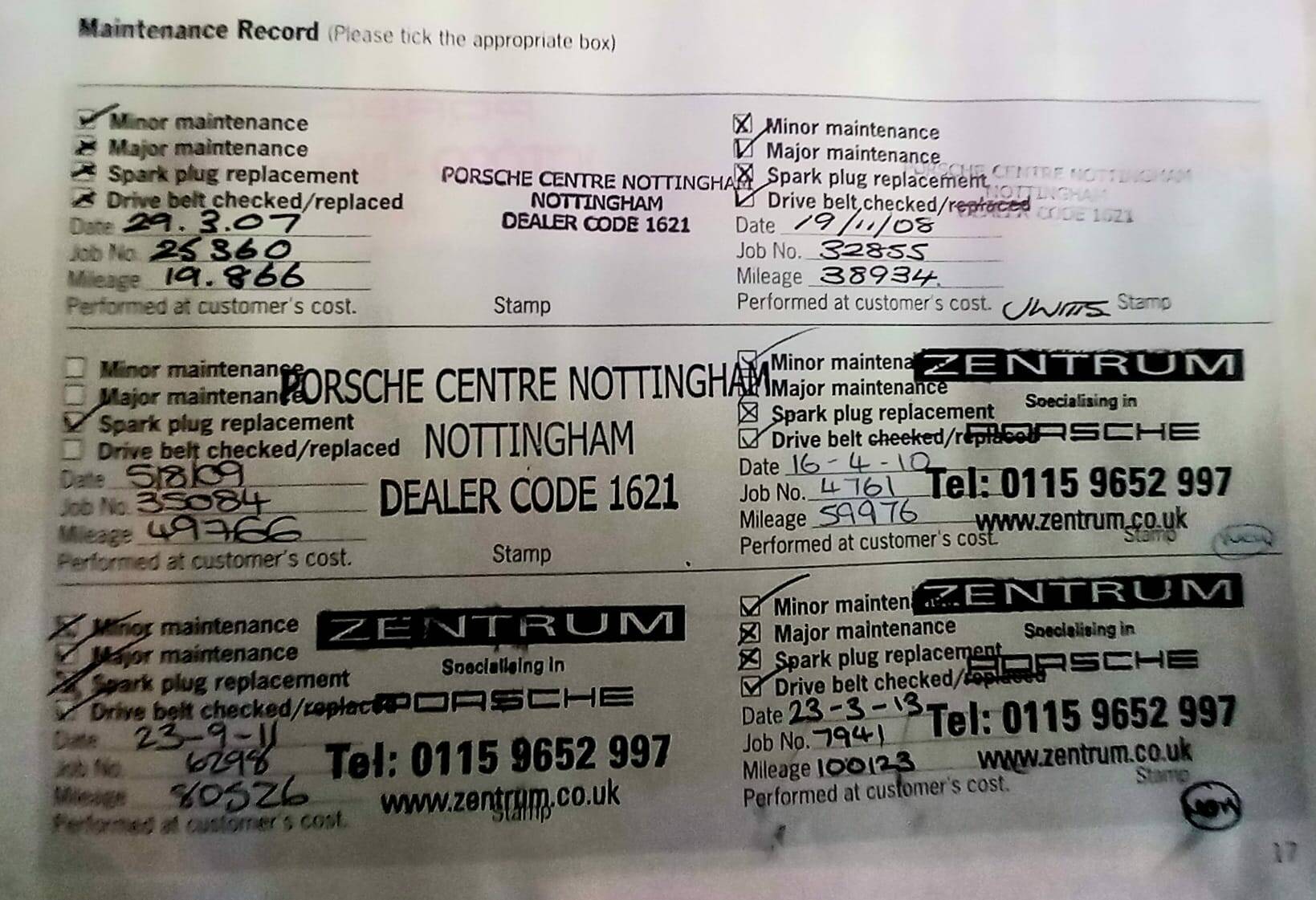 29/03/2007 – Service Porsche Centre Nottingham – Miles 19,866