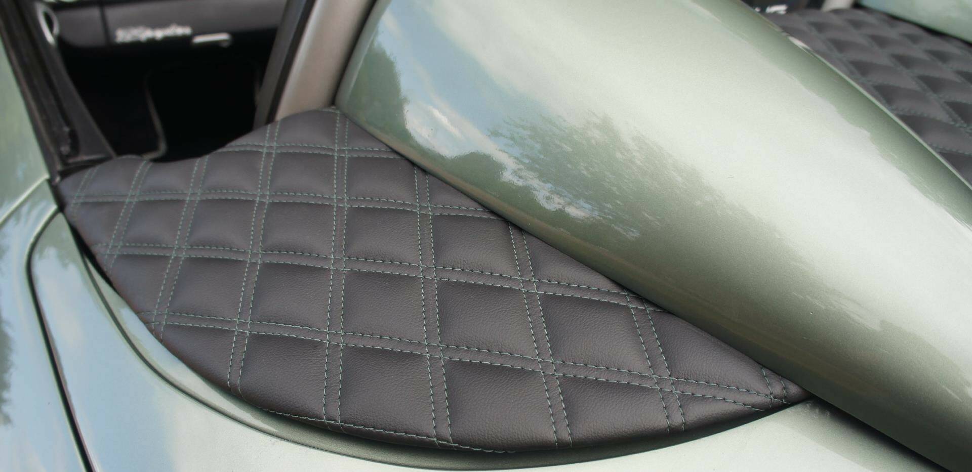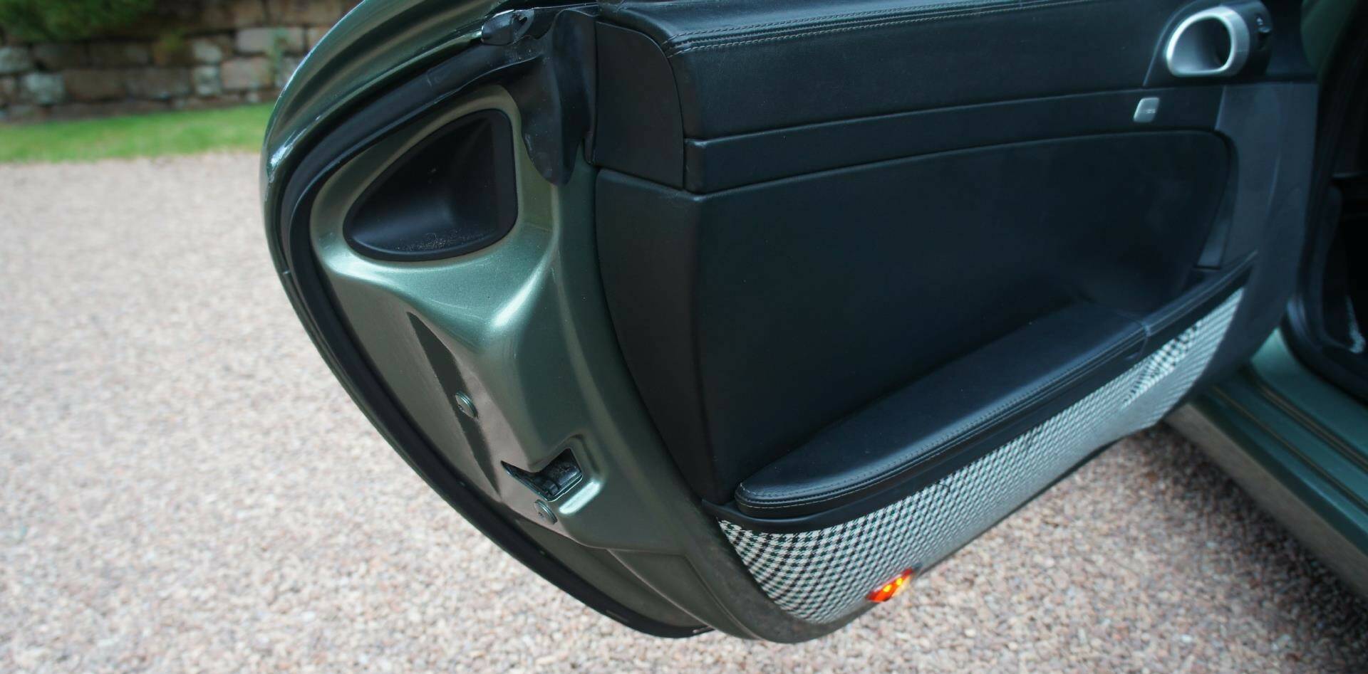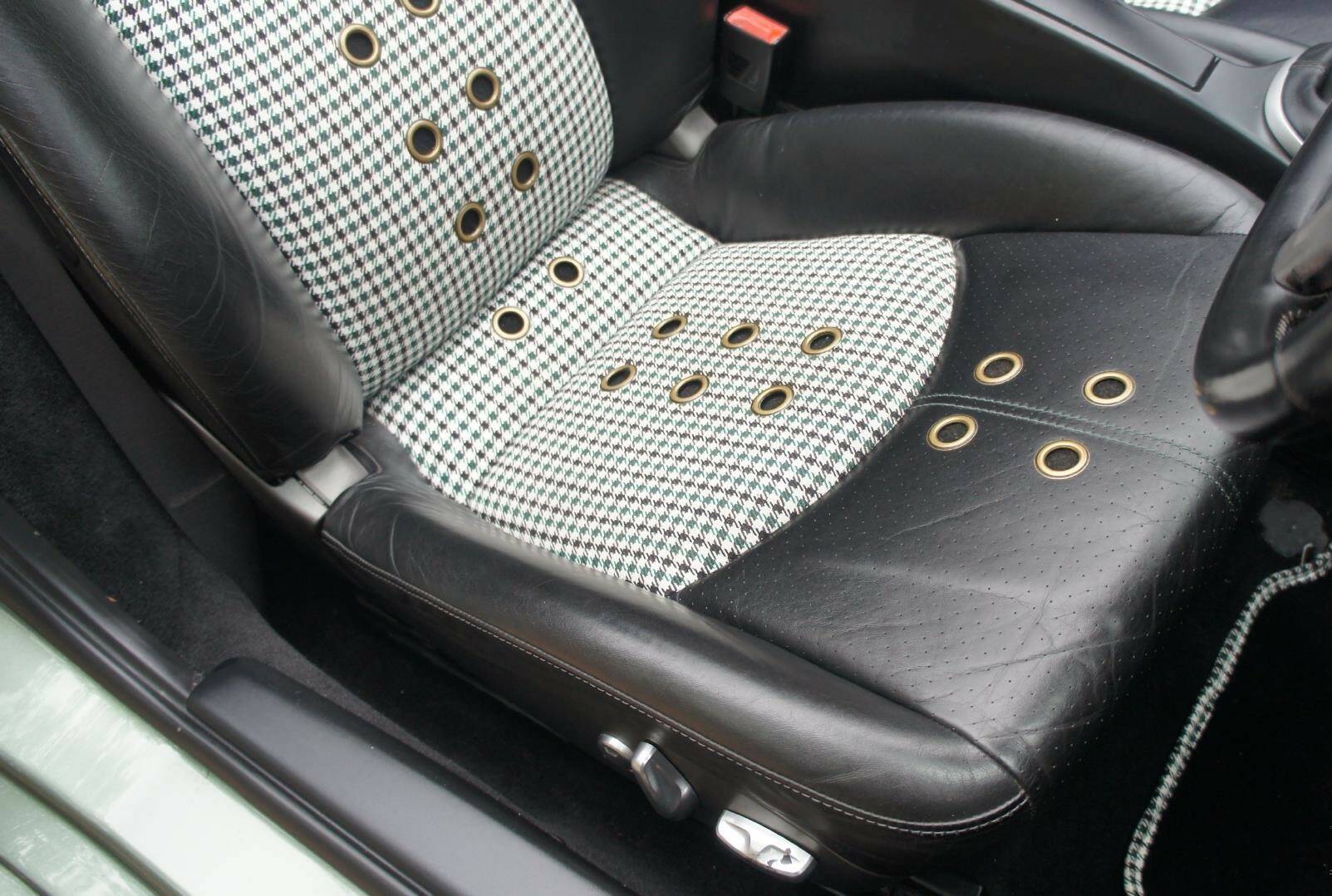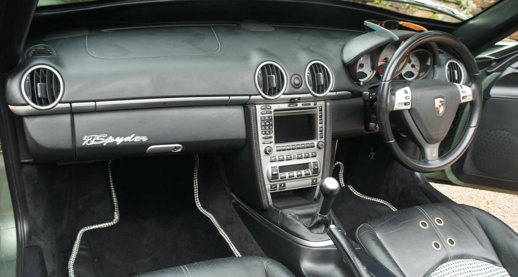 The original Porsche Black Soft-Leather Cabin has been uniquely re-imagined by Viking Interiors, Wirral. Now with a distinct, original, classic interior. Black Half Calf Skin Leather with Classic Porsche Green Pepita Grand Prix Cheque Seats, bespoke, 387 Spyder Floor Mat & matching Door Cards that creates a uniquely, *classic look *within a contemporary, practical cabin.