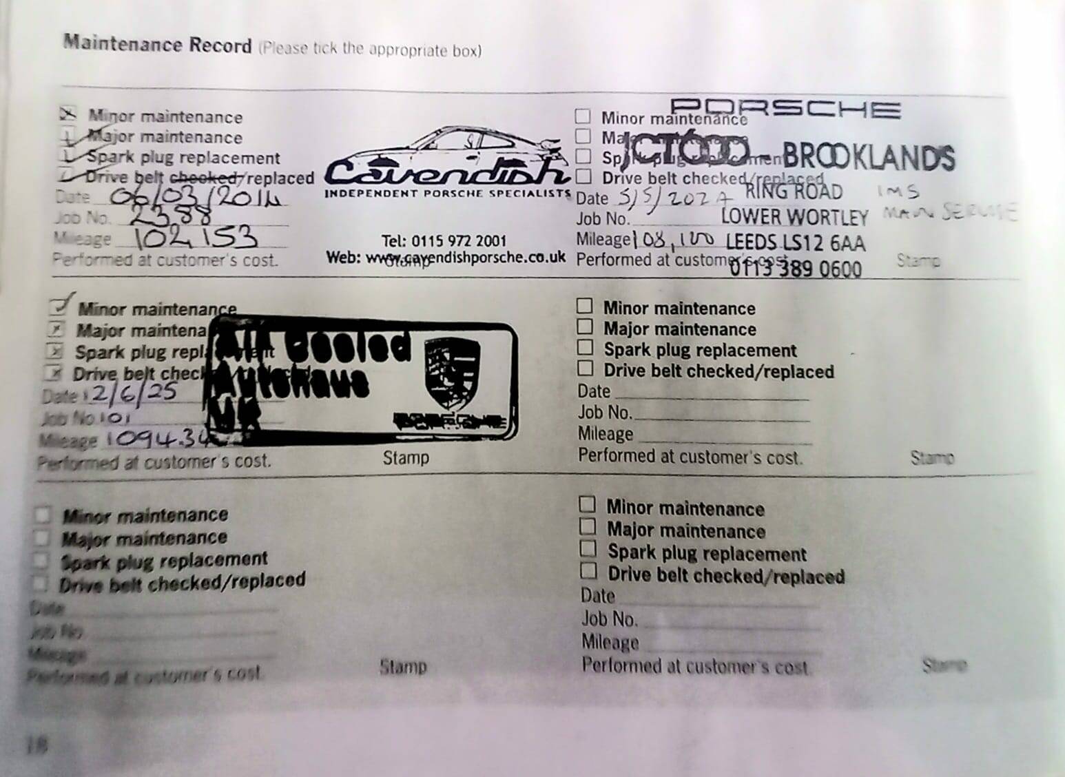 18/05/2025 – Service/MOT/Maintenance, Air Cooled Porsche Autohaus UK – Miles 109,400