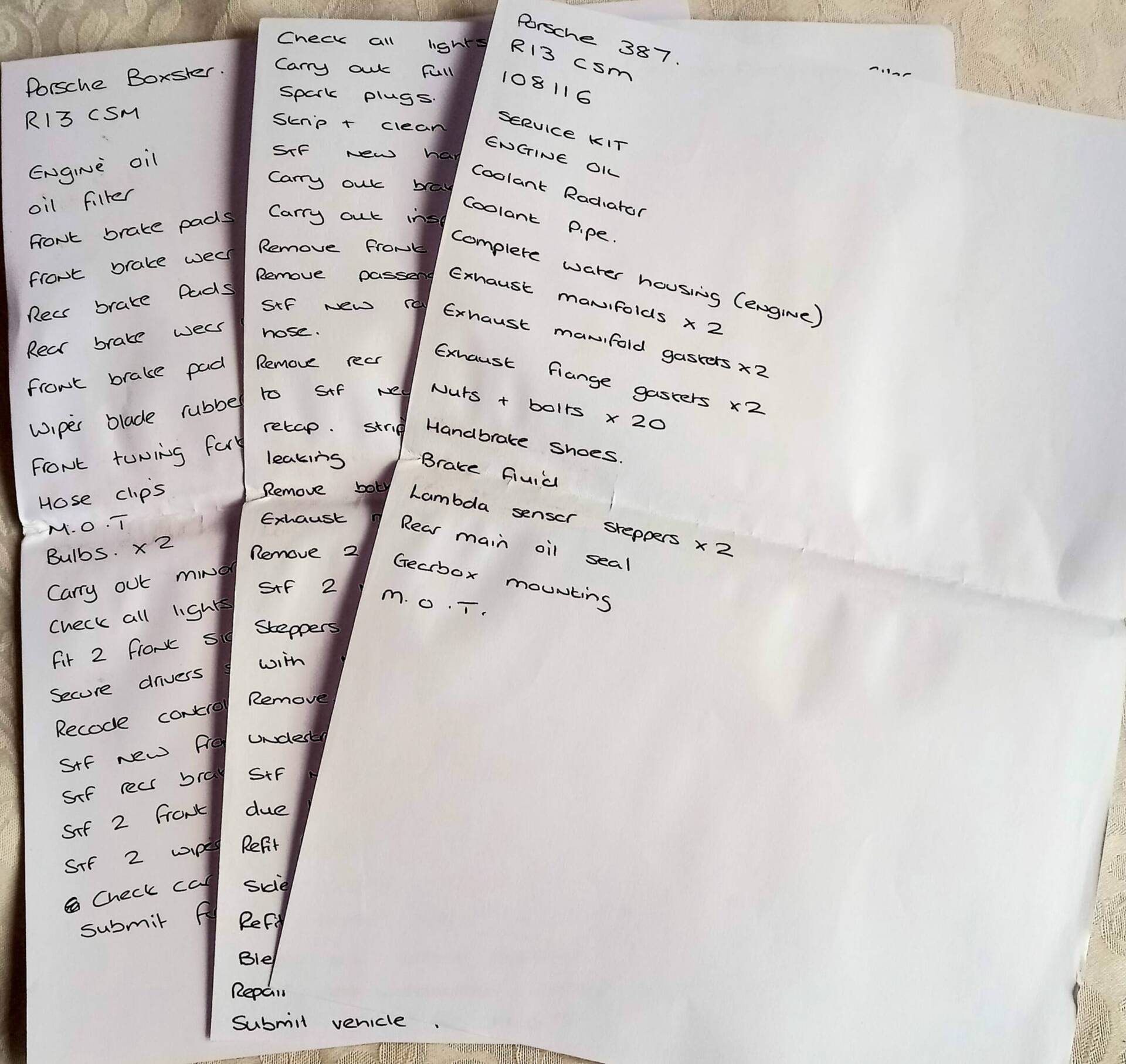 Extensive Porsche Service History (Donor Car). Past two years the car has been serviced, maintained & performance managed by Porsche Autohaus UK (Chris Dyer). *June***2025 - **Service; Oil Change, Coolant Change, Air filter, **Additional Maintenance: **New Front & Rear Brake Pads, Replace Front Drop links x 2, MOT, (passed with no advisories). - **June 2024 **at 107,981 miles. Full, Major Service including - Air Filter, Pollen Filter, Spark Plugs, Oil Change, Brake Fluid Change plus Additional maintenance: Full Vehicle Inspection. Removed Gearbox Flywheel & Clutch – Fitted New Rear Engine Main Oil Seal (IMS), New Gearbox Mountings, Bled Cooling System. New Handbrake Shoes, New N/S Radiator, New Radiator Bleed Coolant Hose, New Engine Water Coolant Cowl, Fit 2 x **New Custom Sports Exhaust Manifolds, **New Lambada Sensors with Steppers (x2).