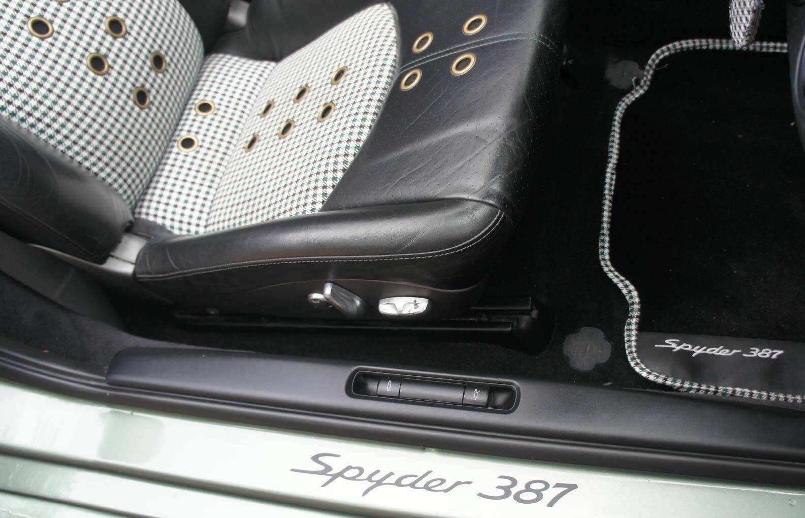 387 Spyder - Styling & performance enhanced to even greater heights; **Porsche 718 Style Spyder,**Colour Coded, Rear Spyder Turrets; bespoke, Singer Porsche style, **Half Leather/Half Grandprix Green Pepita Cheque Interior **(original Pepita material supplied by Porsche Stuttgart). 19” Ten-hole, Iconic Autobody Signature, Alloy Wheels, shod with Michelin Pilot Sport 4S tyres. A set up that is optimised to perform best on road but is also effective for track. Iconic Autobody 387 for sale (drivingyourdream.com).