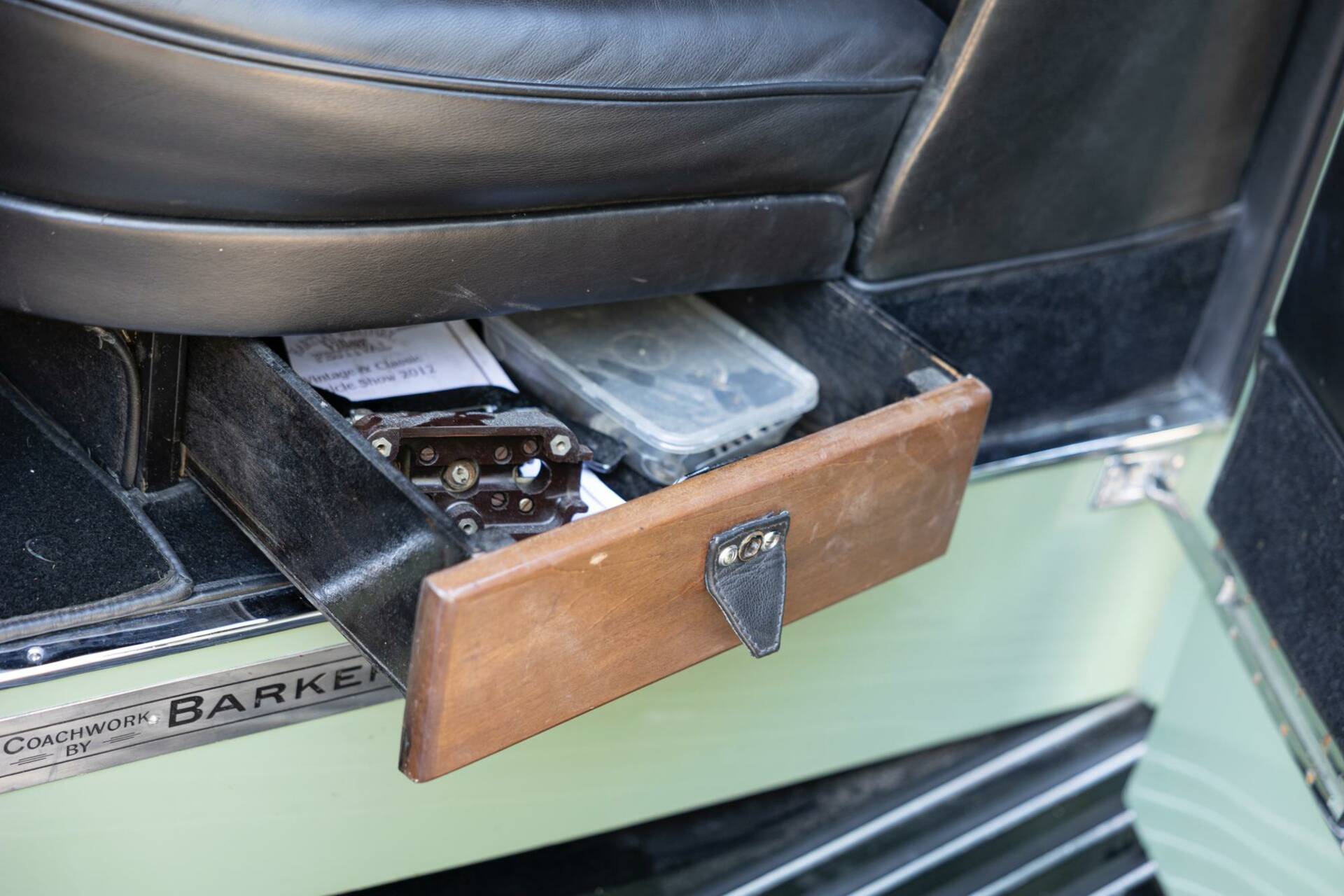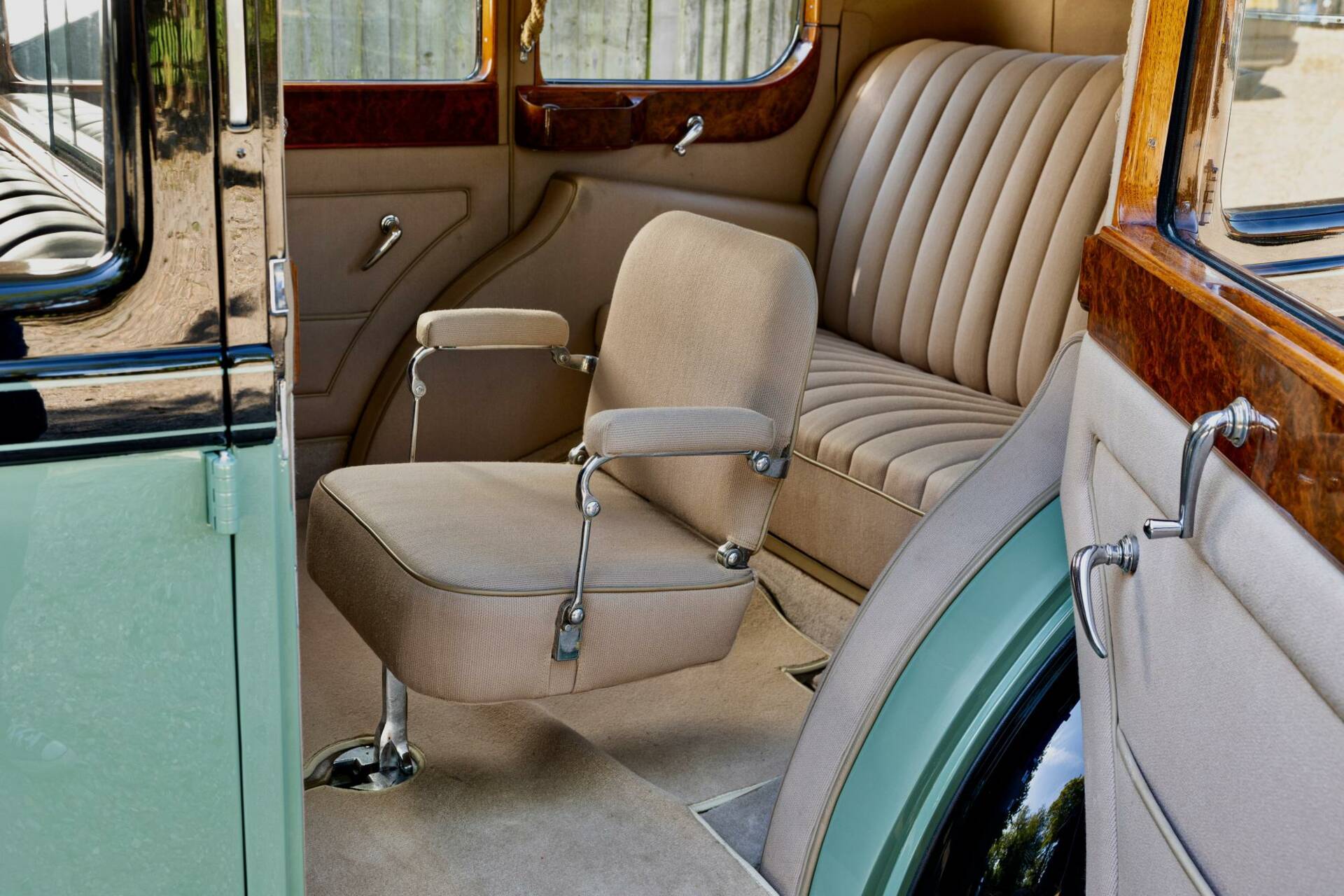The engine is fully rebuilt along with the rest of the mechanics. The car is finished in beautiful pale green over black. To the interior is new black leather to the drivers quarters & bedford cord to the rear. A pair of particularly comfortable occasional seats fold out of the bulkhead. All the burr walnut has ben removed & beautifully french polished to as when new.