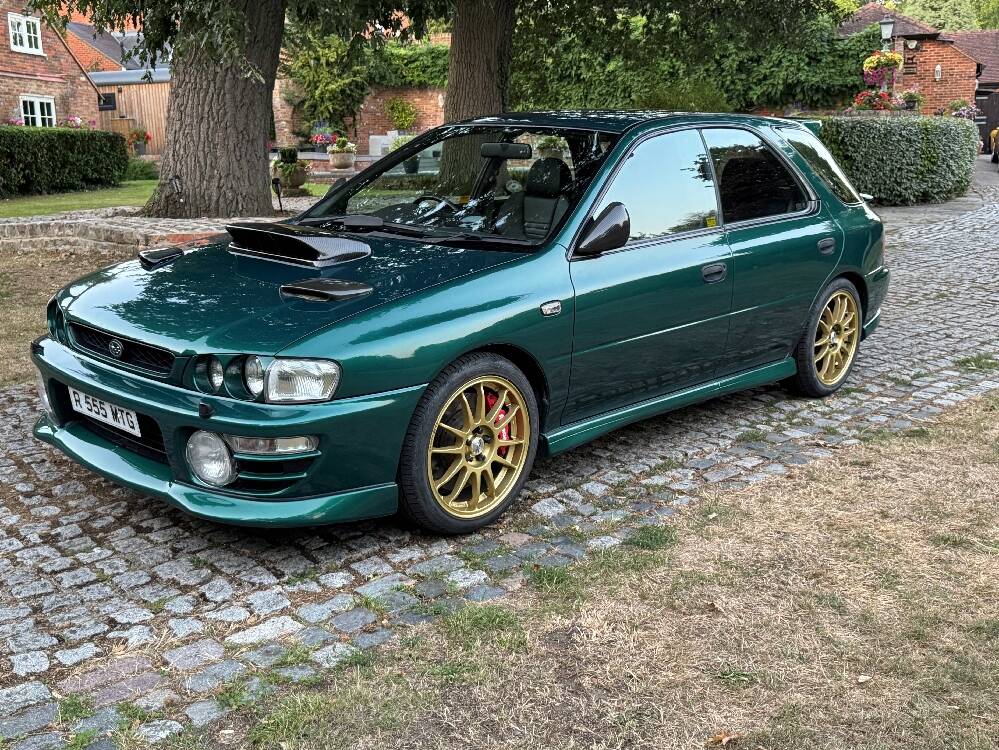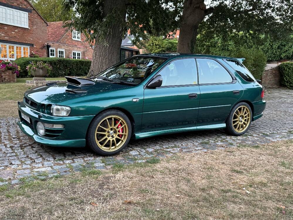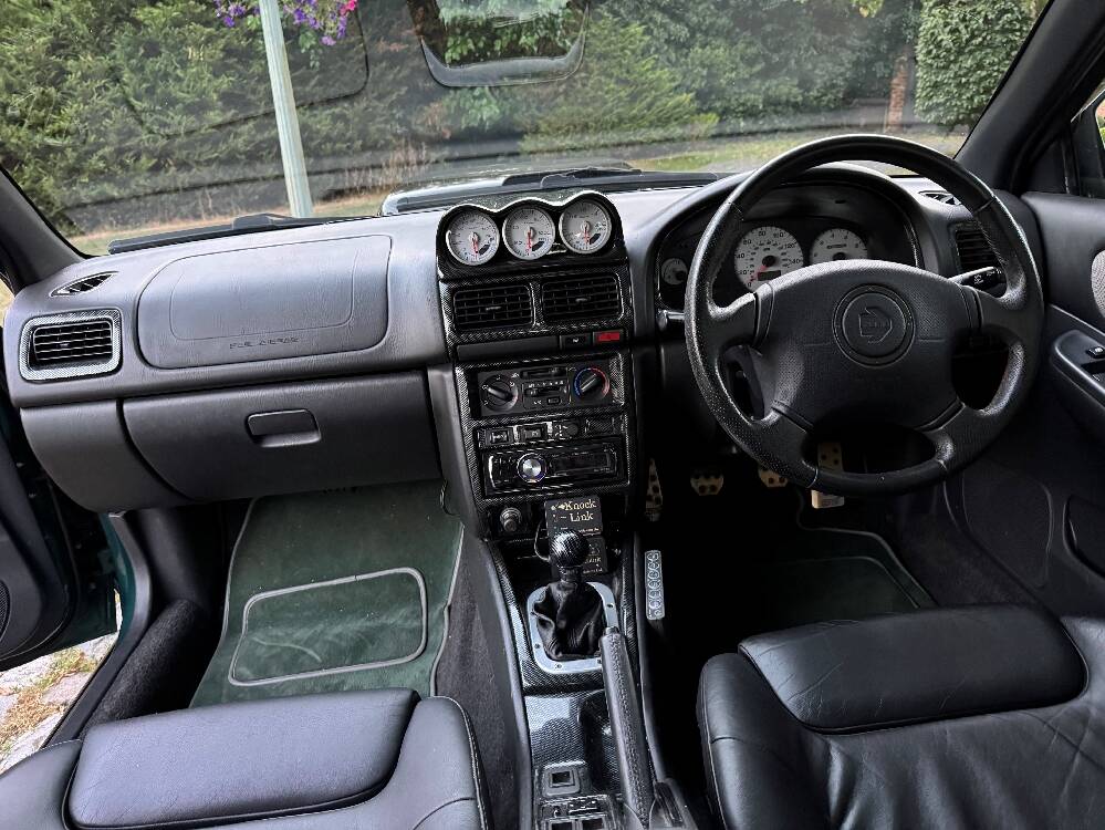 1998 Subaru Impreza Turbo finished in metalic Japanese Racing Green with black leather Recaro Sports front seats. Purchased by the current owner back in 2000 when he was re-living his youth and who is my close friend and was our sales manager for over 40 years. Having covered only 60,000 miles from new, the service record reads like “War and Peace” with 23 service stamps in the service book. During his 25-year ownership of this Rocket Ship and judging by the number of invoices in the file amounting to around £17,500, he lavished a fair proportion of his salary on numerous upgrades and regular servicing. You only have to look at the pictures, all of which are current to observe the huge number of extras and upgrades. Now offered for sale, solely due to ill health at what we consider to be a bargain price of £8,950