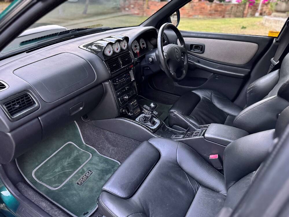 1998 Subaru Impreza Turbo finished in metalic Japanese Racing Green with black leather Recaro Sports front seats.