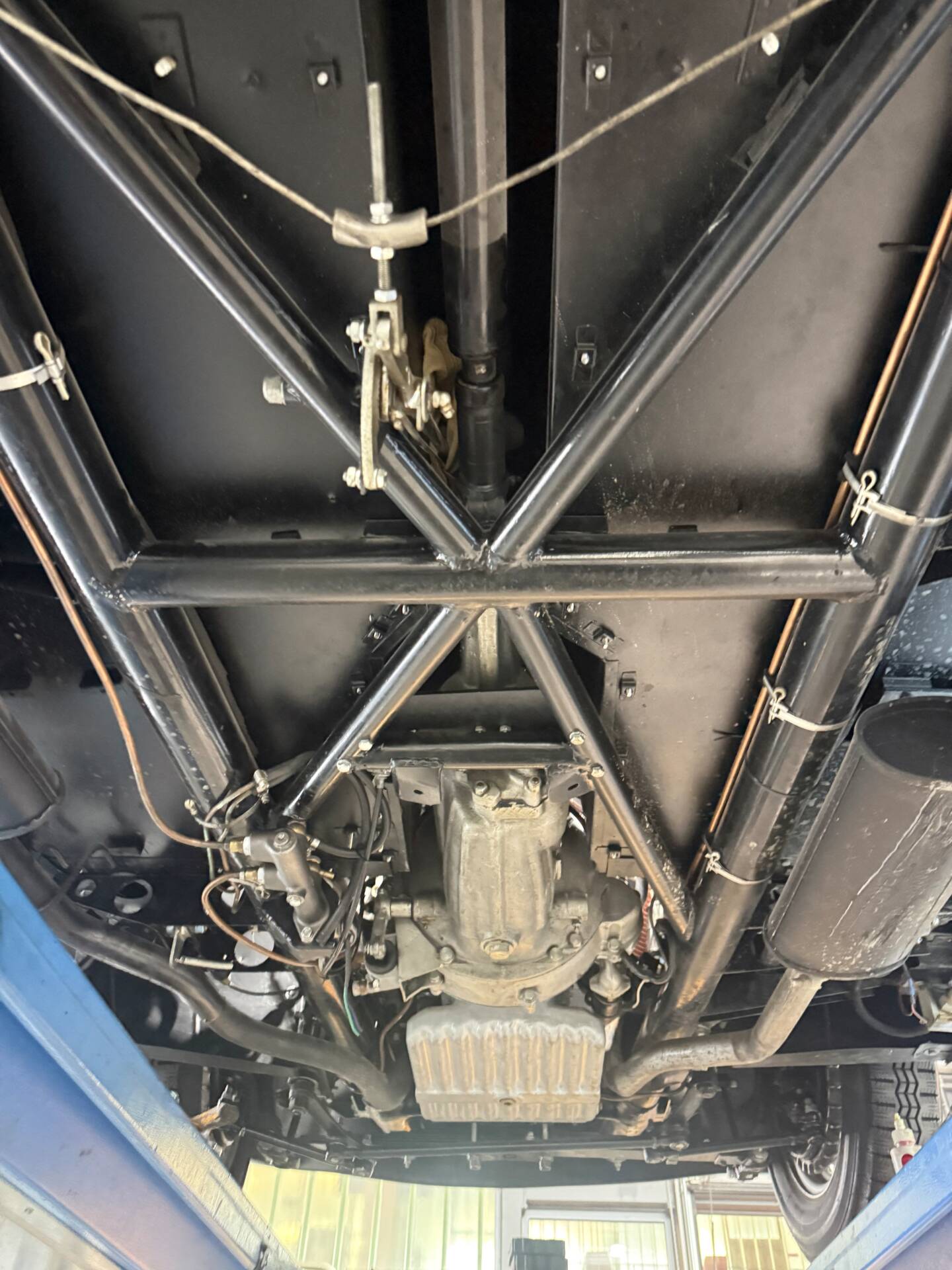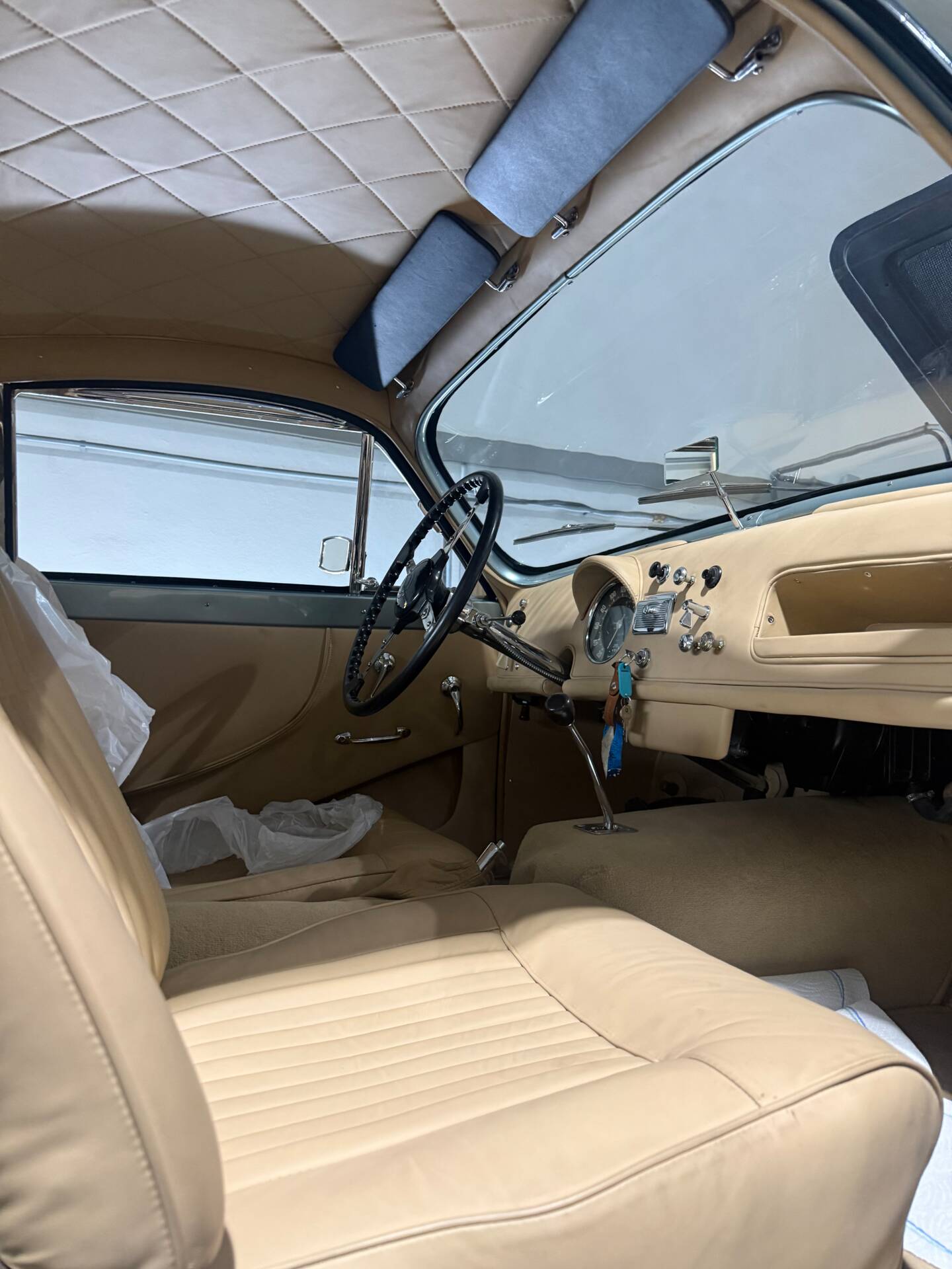 Today, the car is in excellent cosmetic and mechanical condition. During the restoration, the vehicle was completely rebuilt: engine, gearbox, and rear axle were overhauled, and the body was stripped to bare metal. The wood trim on the interior doors and headliner was restored as well.