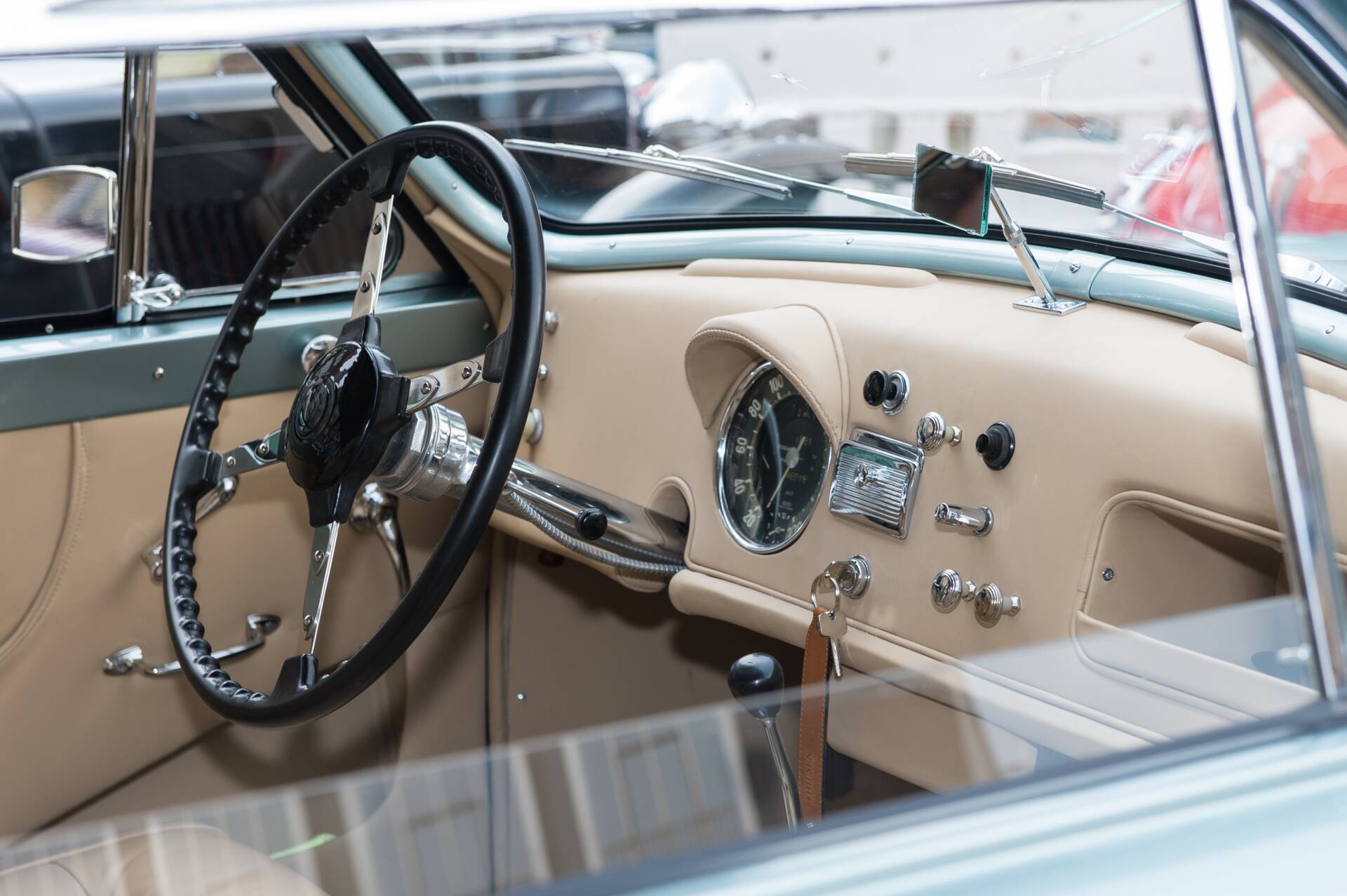 After the sale of Talbot Lago to Simca, the original 2.5-liter BMW engine was replaced with a Ford V8 engine. The engine in this car is the matching-numbers engine.