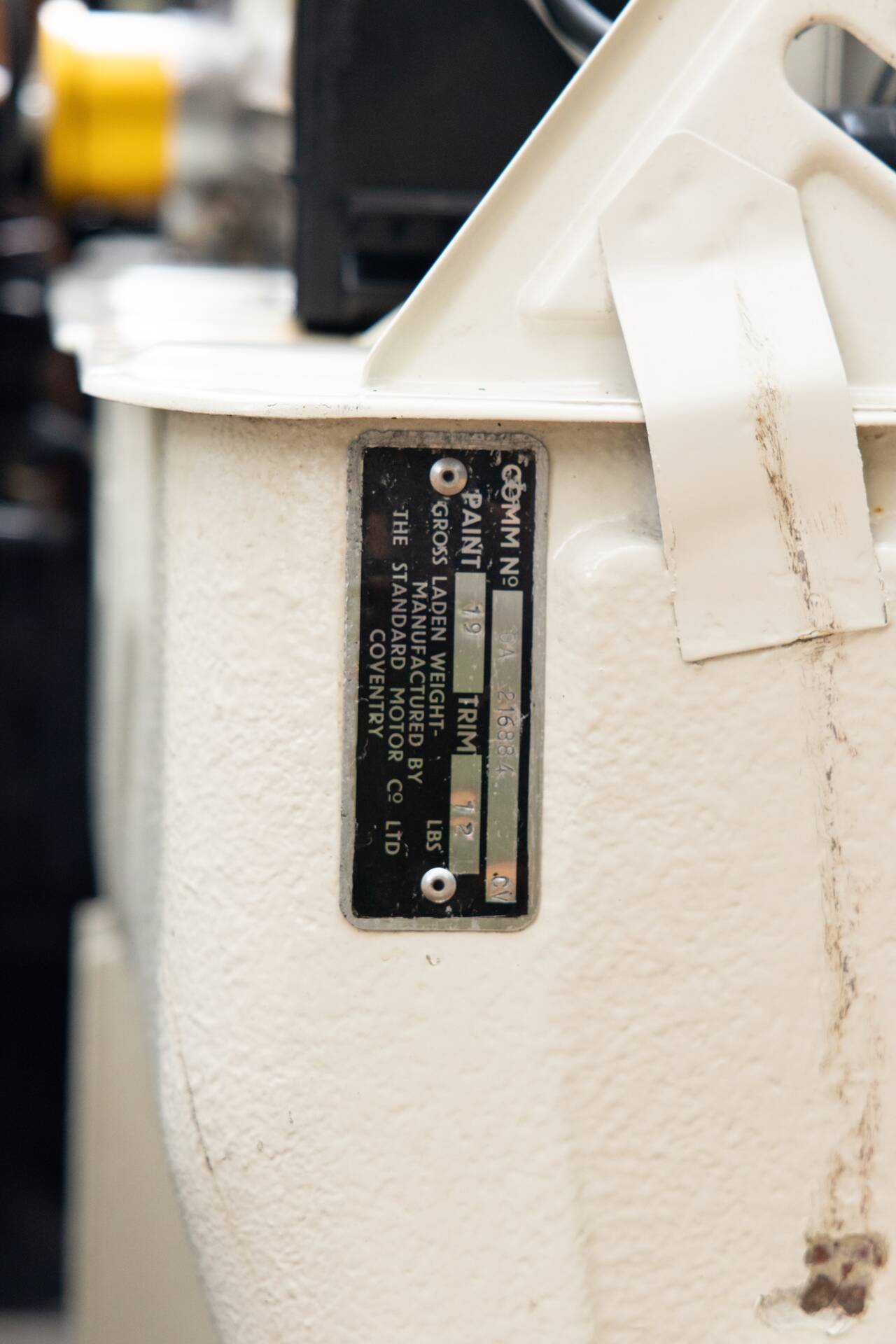 The Triumph was stripped to its bare chassis, with a new unused chassis sourced from a technical college replacing the original. Mechanically, everything was replaced or overhauled, including a new differential and rear suspension swing arm conversion (reducing the infamous Herald wheel tuck under). The original engine was rebuilt and balanced using new pistons and rings, an unleaded cylinder head, and fitted with Spitfire twin SU carburettors and a stainless steel four-branch tubular exhaust manifold. An electronic rev counter has been added, along with a Triumph Spitfire D-Type overdrive gearbox to aid more comfortable cruising. Virtually everything has been overhauled or replaced. The interior is a joy, with a dashboard that may be described as perfect. The hood is easily lowered and neatly covered; importantly, it is also quick to erect. On the road, the Herald performs admirably, keeping up with modern traffic and handling inclines with ease; the overdrive gearbox operates smoothly, making cruising comfortable at speed. The restoration achieved multiple Triumph Sports Six Club International Concours awards: Best in Show (2001), Master Class Winner (2002), Best Herald (2003) and Best Interior (2004). It later won the TSSC South of England Best Herald title in 2008.