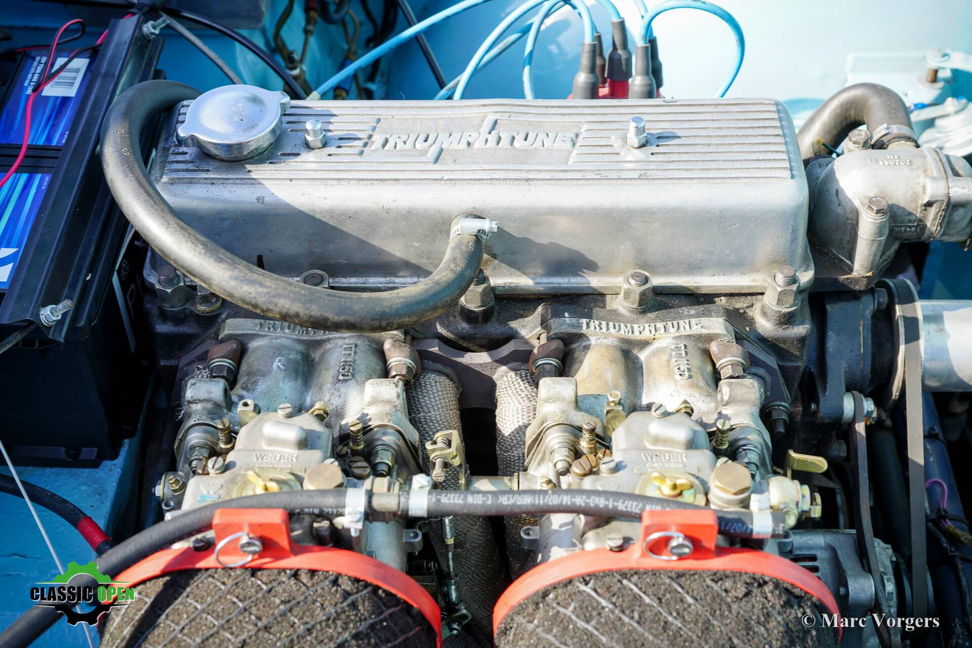 The high engine power becomes evident above 4000 rpm. The engine is fitted with an aluminium Triumph Tune rocker cover, Mallory ignition, a more efficient alternator, an electric cooling fan, an oil cooler and a Facet petrol pump. The rear axle has a LSD (75%) in the differential.
