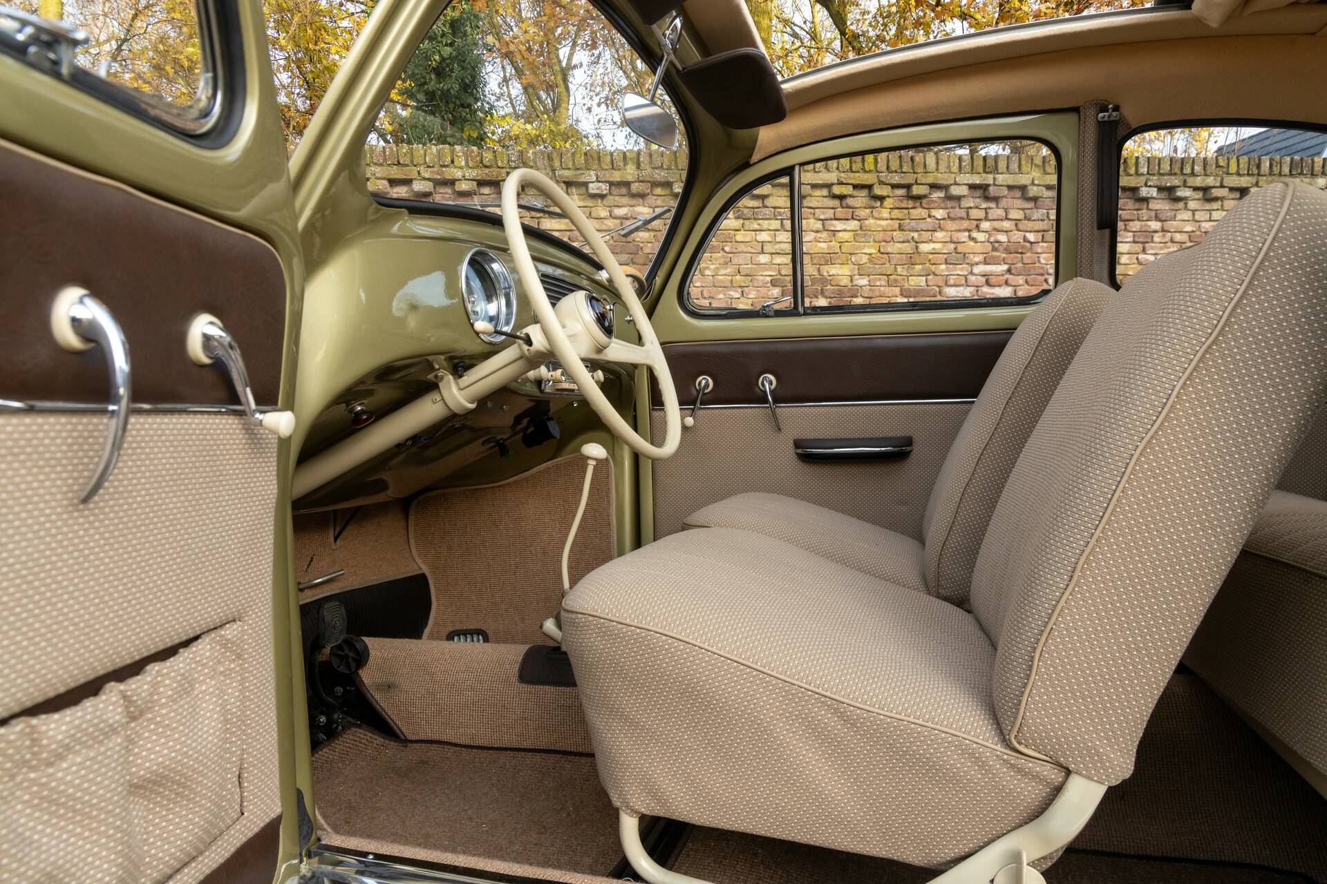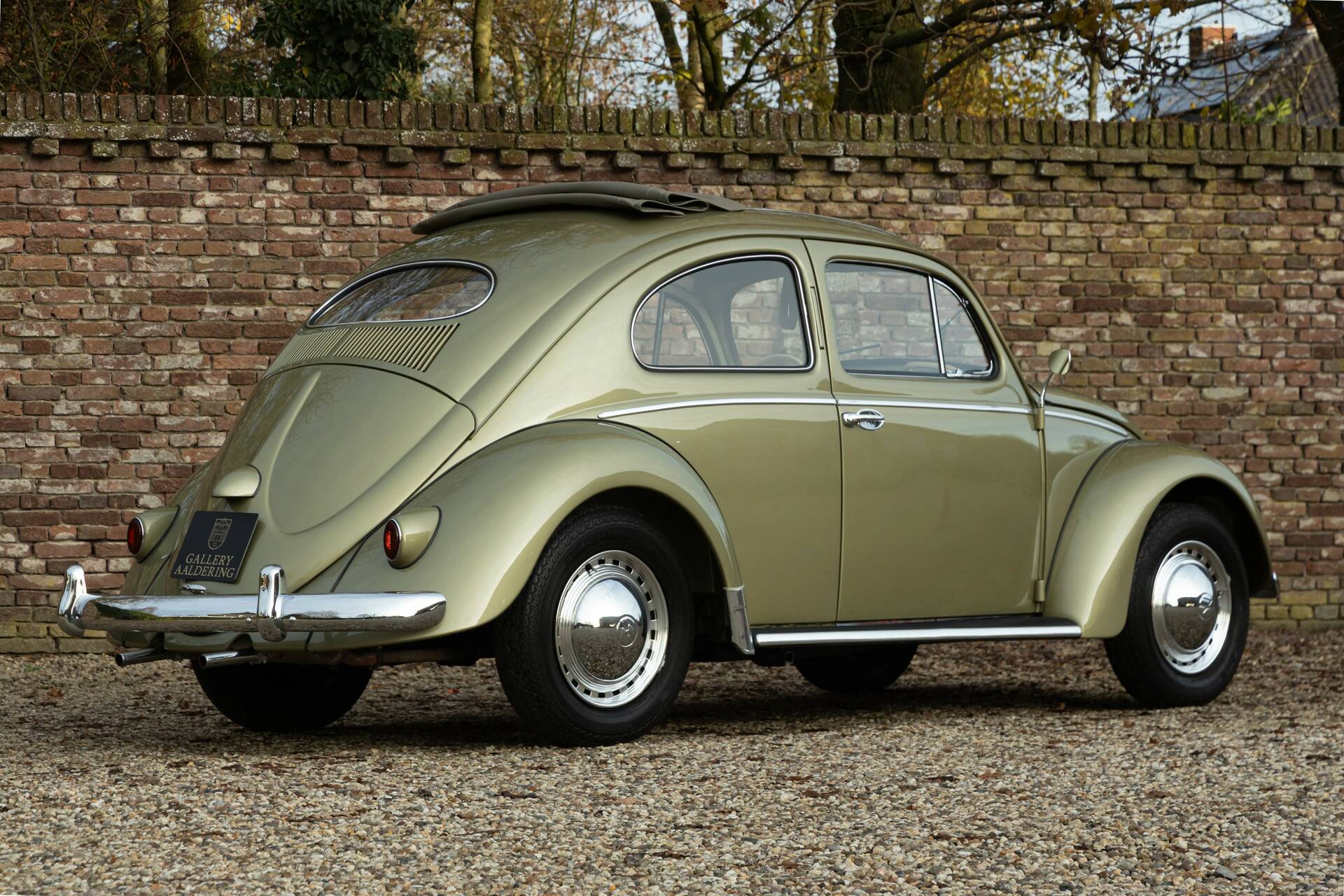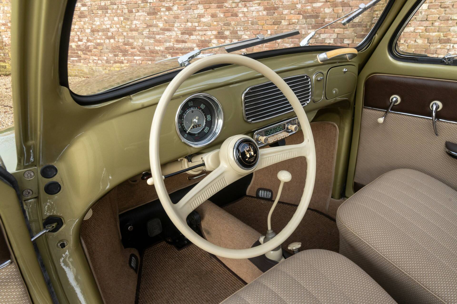 Volkswagen Beetle Oval Ragtop "Total ground up restoration" Fully restored - "Driven by enthusiasm and perfection", Even the chair springs have been sandblasted, Classy “Diamant Grün” with cozy beige-brown fabric interior, Restoration (early 2000 in Germany) documented with photographs, First German “Fahrzeugbrief” is present, Offered with map and boardmanual, Ragtop “More than just for air cooling”