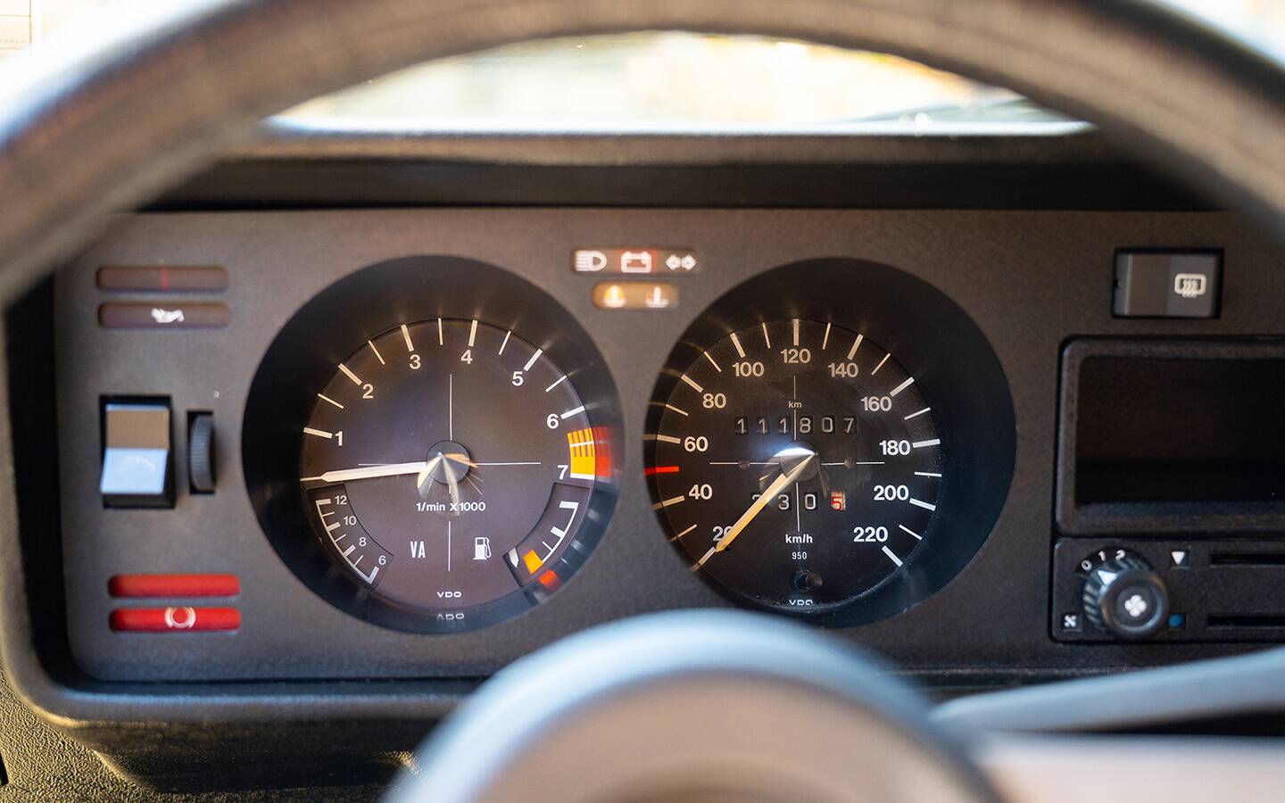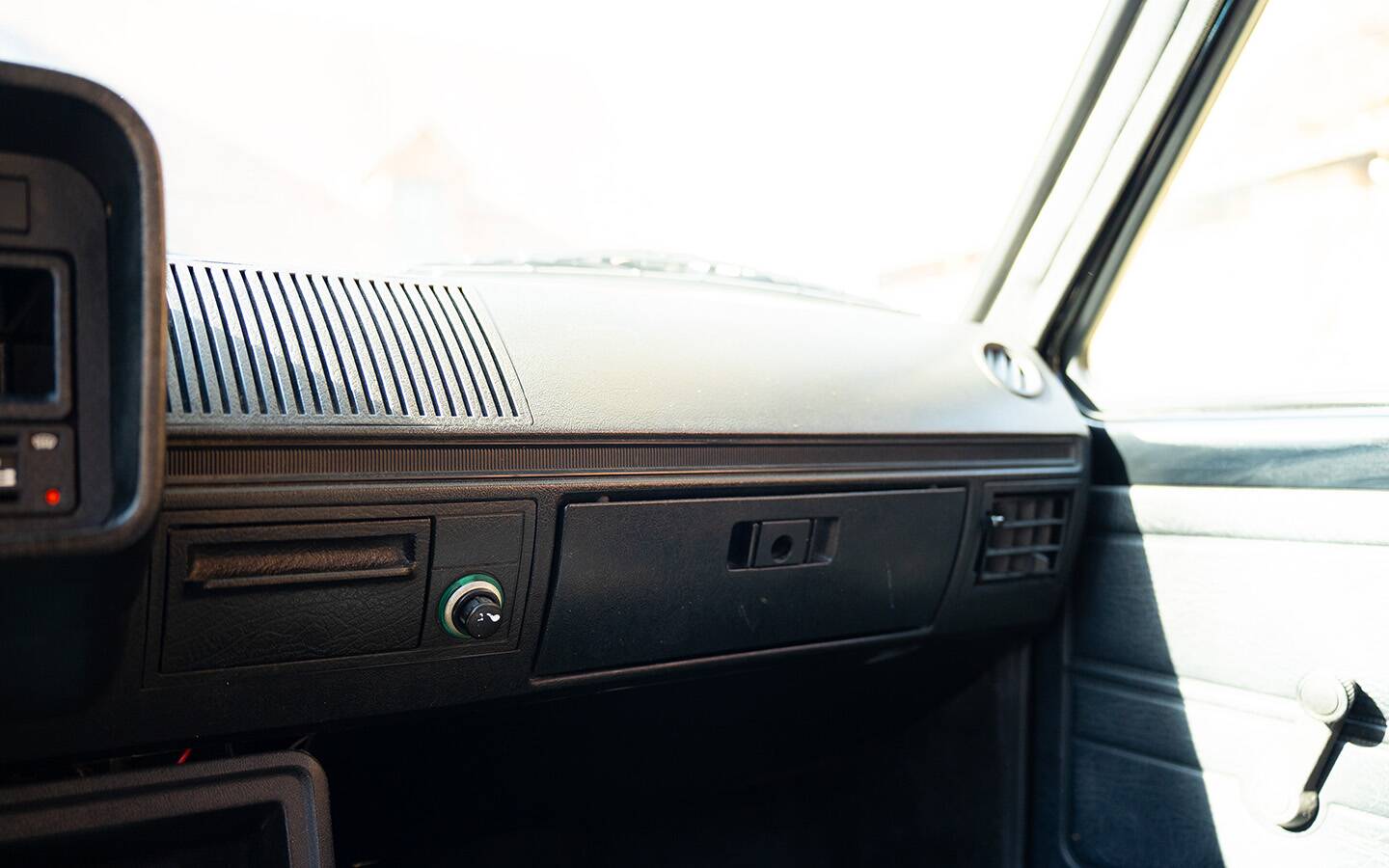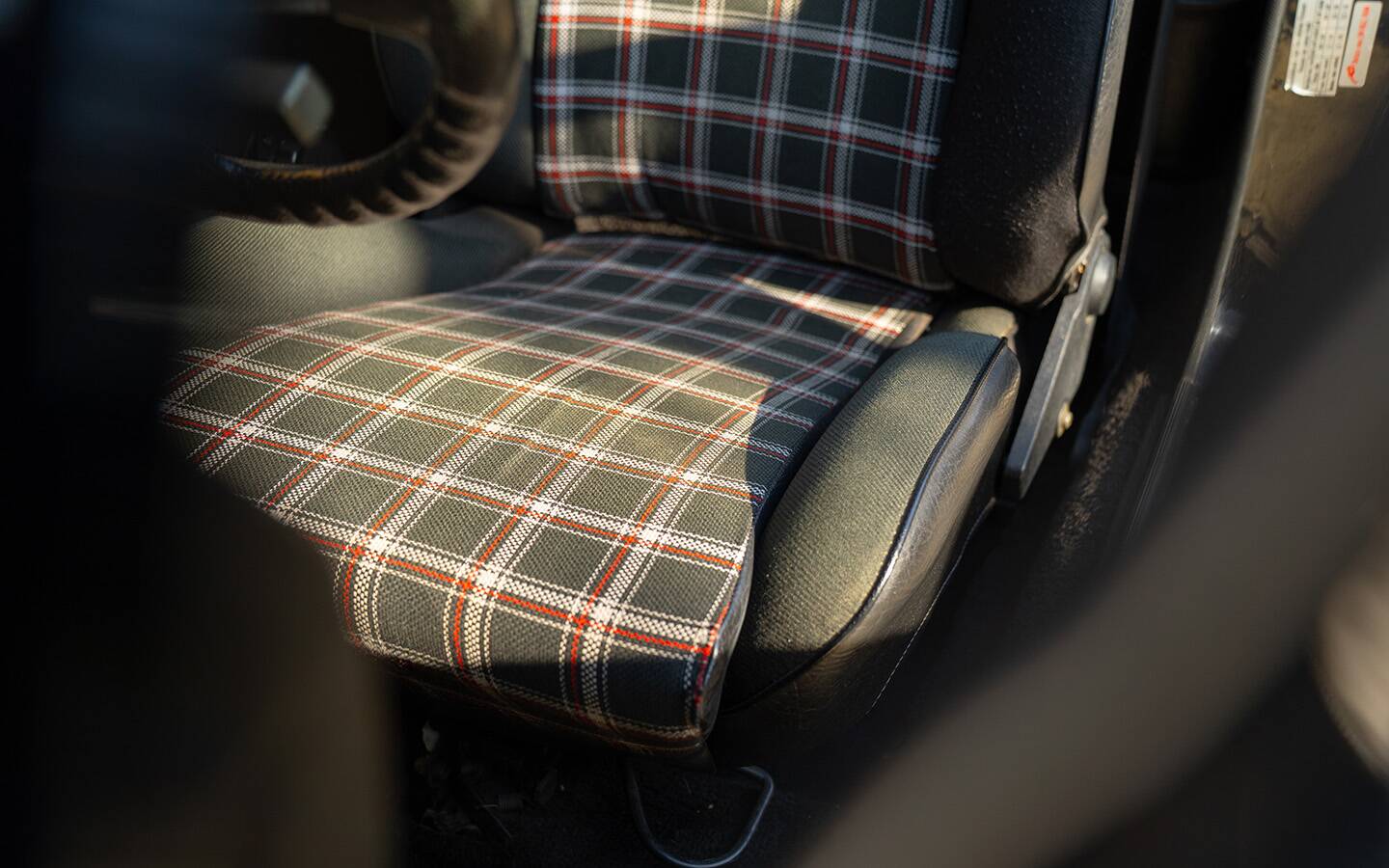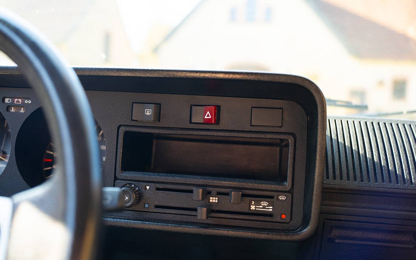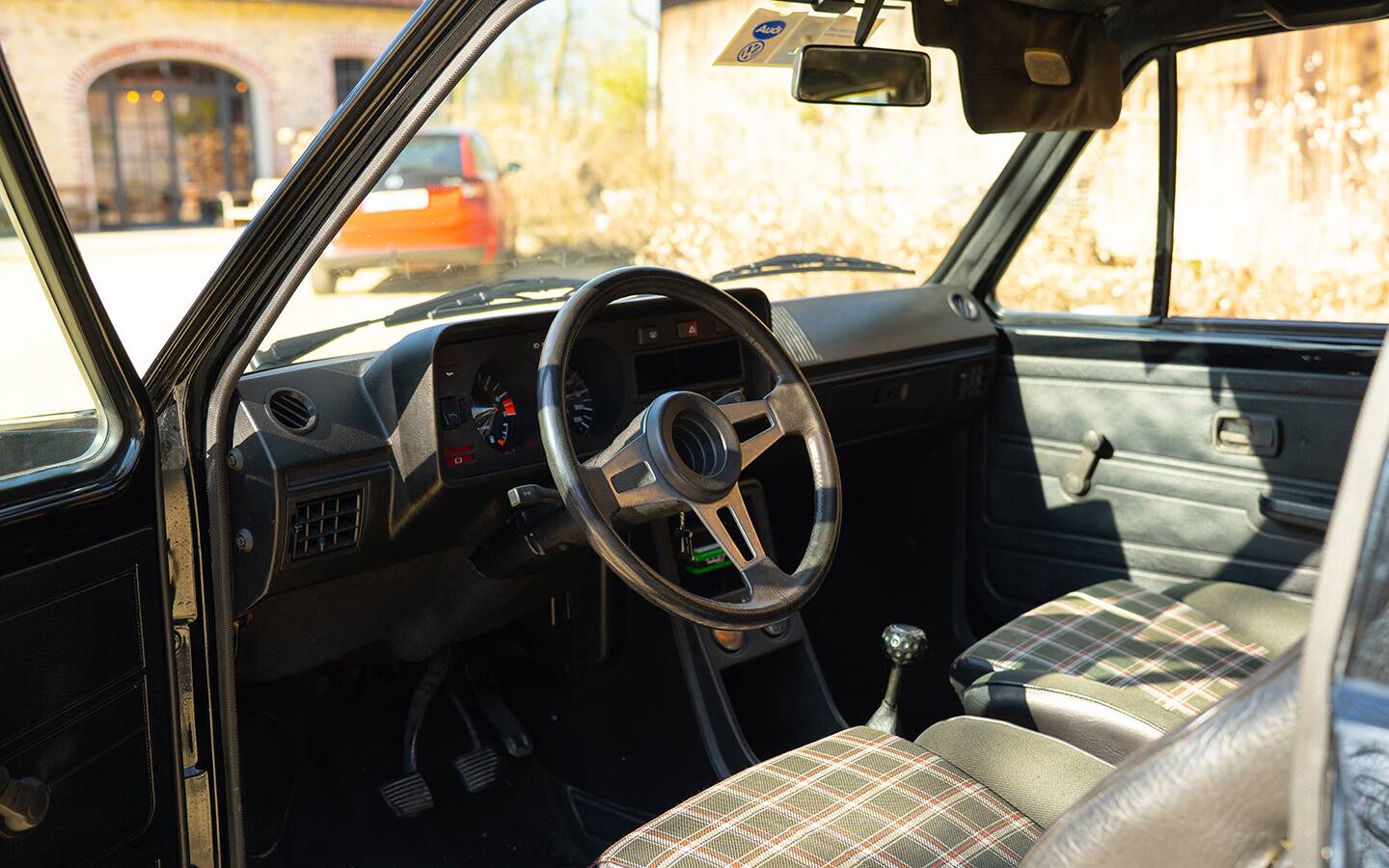 Typische GTI-Details wie das ikonische „Titten-Tacho“ und das klassische „Spucknapf“-Lenkrad sind selbstverständlich noch vorhanden und unterstreichen den authentischen Charakter dieses Fahrzeugs. Es handelt sich hier nicht um eine überrestaurierte Version, sondern um einen echten Überlebenden, der seinen ursprünglichen Charme bewahrt hat.