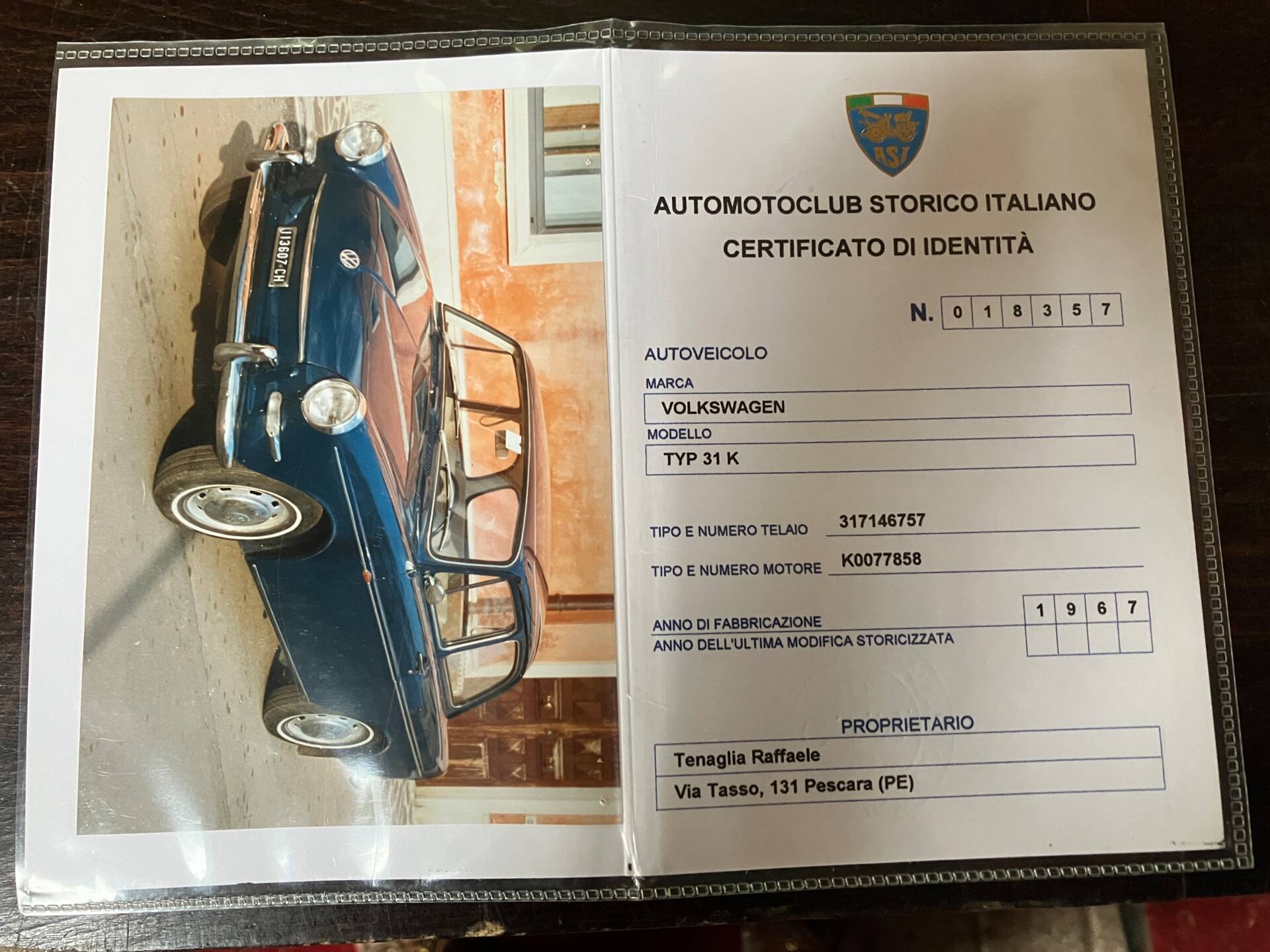 Een zeer mooie VW Ponton Type 3 met slechts 70.000 km! De auto komt oorspronkelijk uit Italië en heeft daar slechts twee eigenaren gehad. Hij is ongerestaureerd en volledig roestvrij; geen plamuur of dikke bitumen om de roest te verbergen. Ook het originele interieur verkeert in zeer goede staat. Mechanisch is de Ponton in perfecte staat; de motor loopt soepel, de versnellingsbak schakelt soepel en de remmen, stuurinrichting, koppeling en het elektrische systeem functioneren zoals het hoort. De auto heeft een Duits H-kenteken en een TÜV (Duitse Technische Keuringsdienst) geldig tot juli 2027. De originele Italiaanse papieren en het ASI-certificaat voor originele historische voertuigen in Italië zijn eveneens aanwezig.
