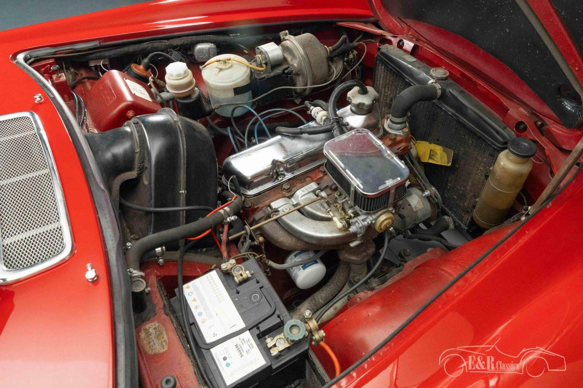 In terms of appearance, this classic exudes pure elegance. The red paintwork looks stunning and creates a stylish contrast with the black interior and red carpeting. The classic wheels with chrome accents complement the timeless design and enhance the sporty look of this coupé. The interior exudes authenticity, with its sleek black upholstery and characteristic dashboard gauges. The interplay between the luxurious interior and the striking exterior makes this Volvo P1800 S a true eye-catcher that will delight any enthusiast.