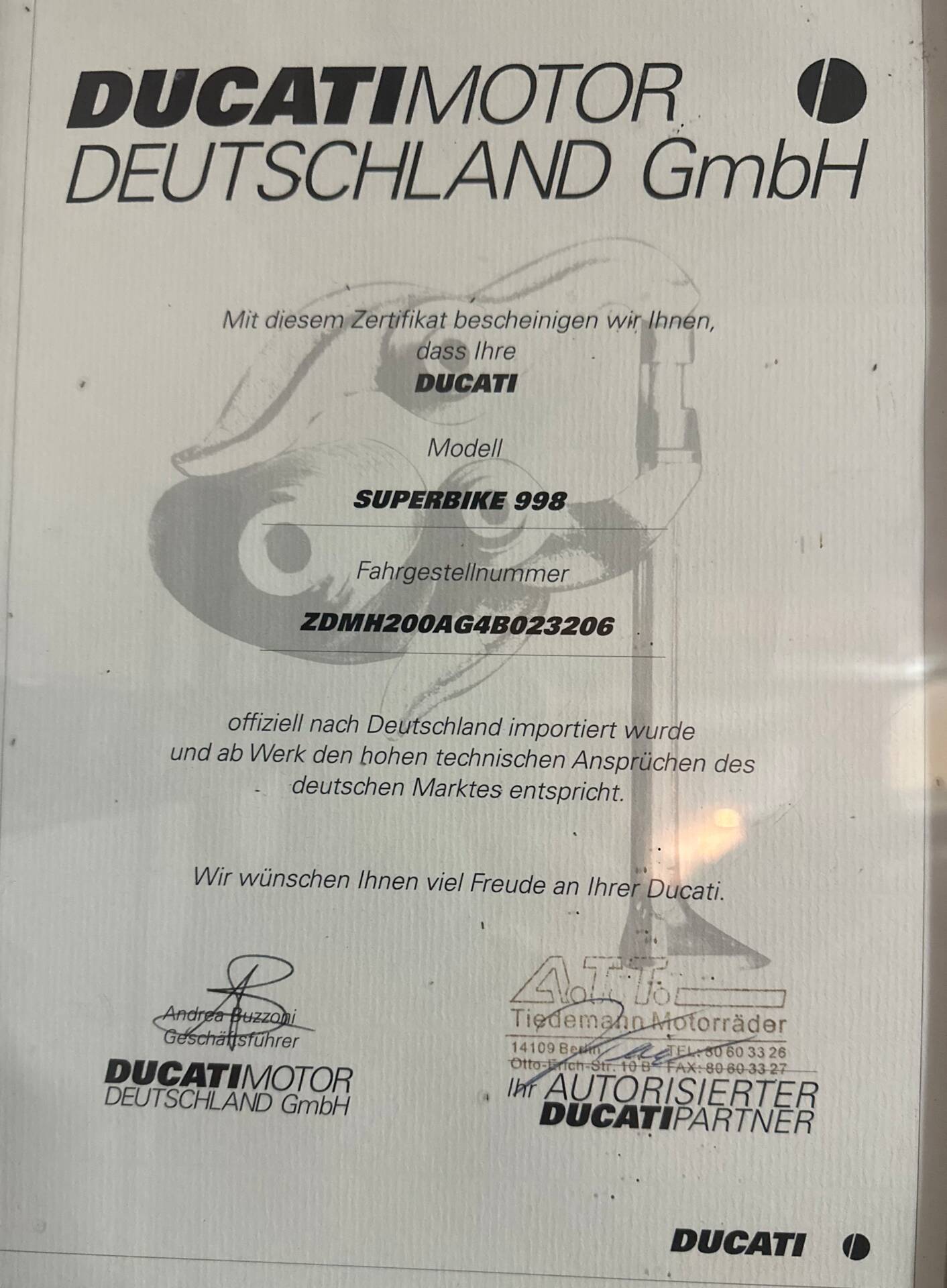 Dies ist eine von 700 Stück und wurde damals über den Ducati Händler ATT Tiedemann - Berlin bezogen.