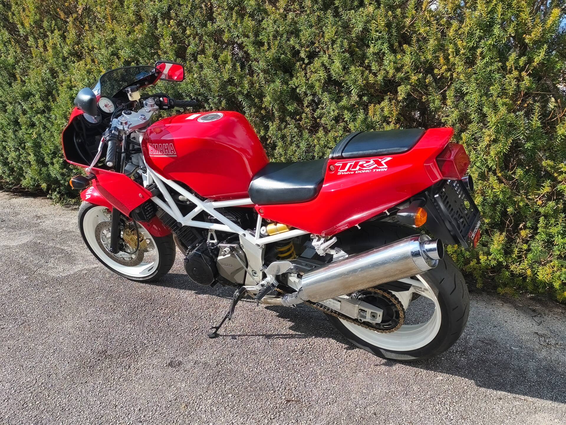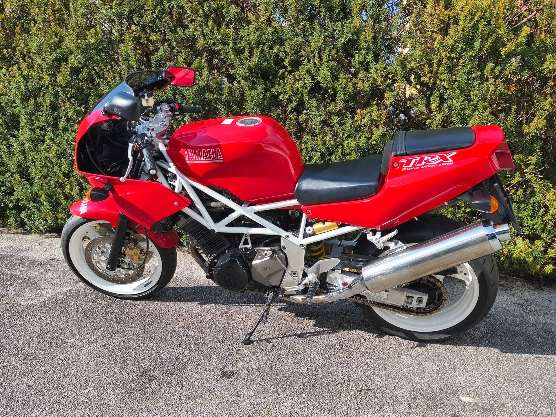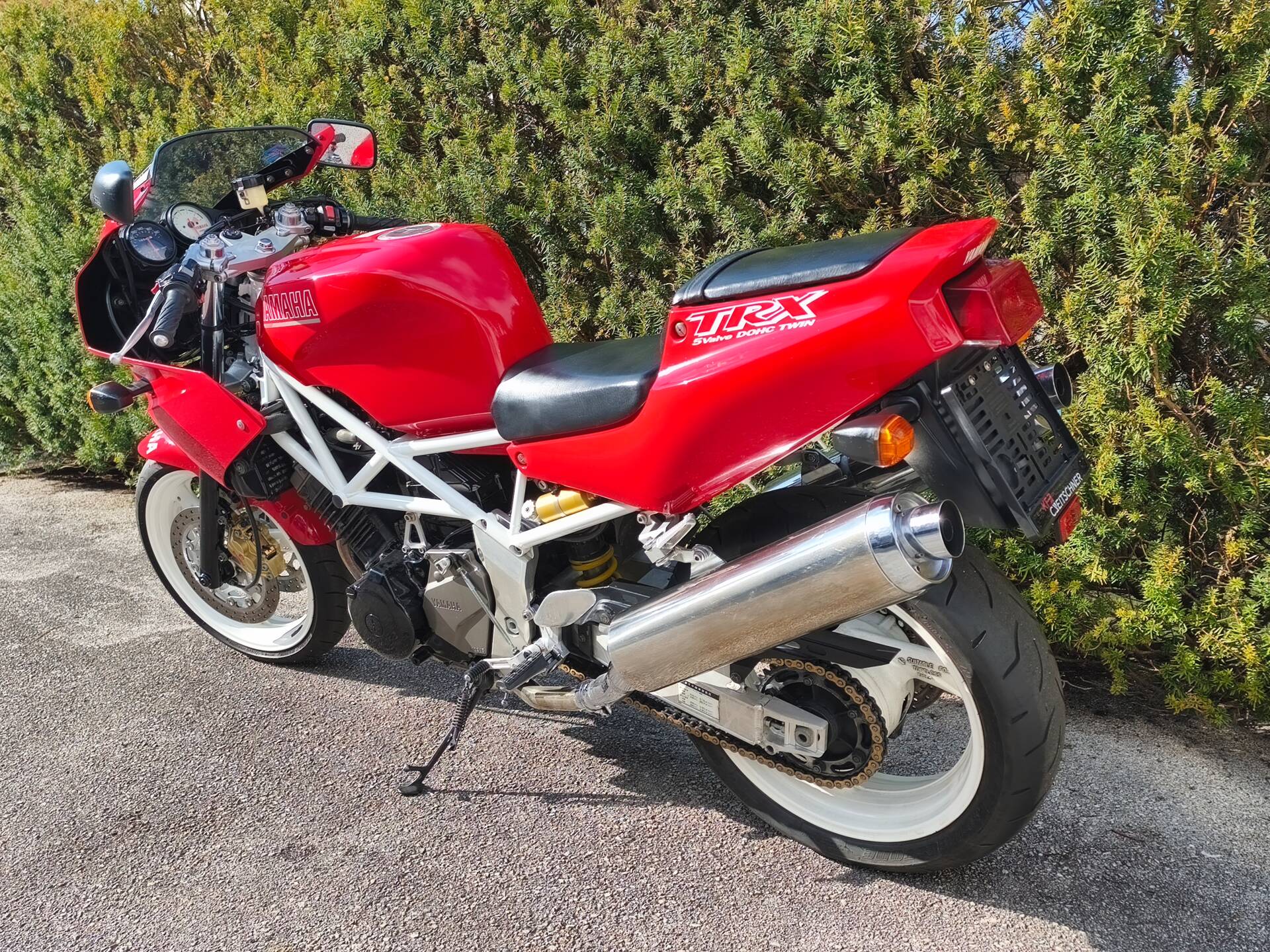 Verkaufe eine absolute Rarität. Es handelt sich um eine Yamaha TRX 4NX aus 1995. Dieses Modell ist die frühere Japan-Version der später in Europa erhältlichen Standard-TRX und mit dieser nicht zu vergleichen. Die Unterschiede zeigen sich im weißen Rahmen und Felgen sowie dem schwarz lackierten Motor. Dazu sind die Bremskomponenten von einem anderen Hersteller und die Motorabstimmung divergiert. Das Fahrzeug ist original und in Österreich einzelgenehmigt. Zudem besitzt es deutsche Fahrzeugpapiere. Nur in gute bzw Sammlerhände abzugeben.